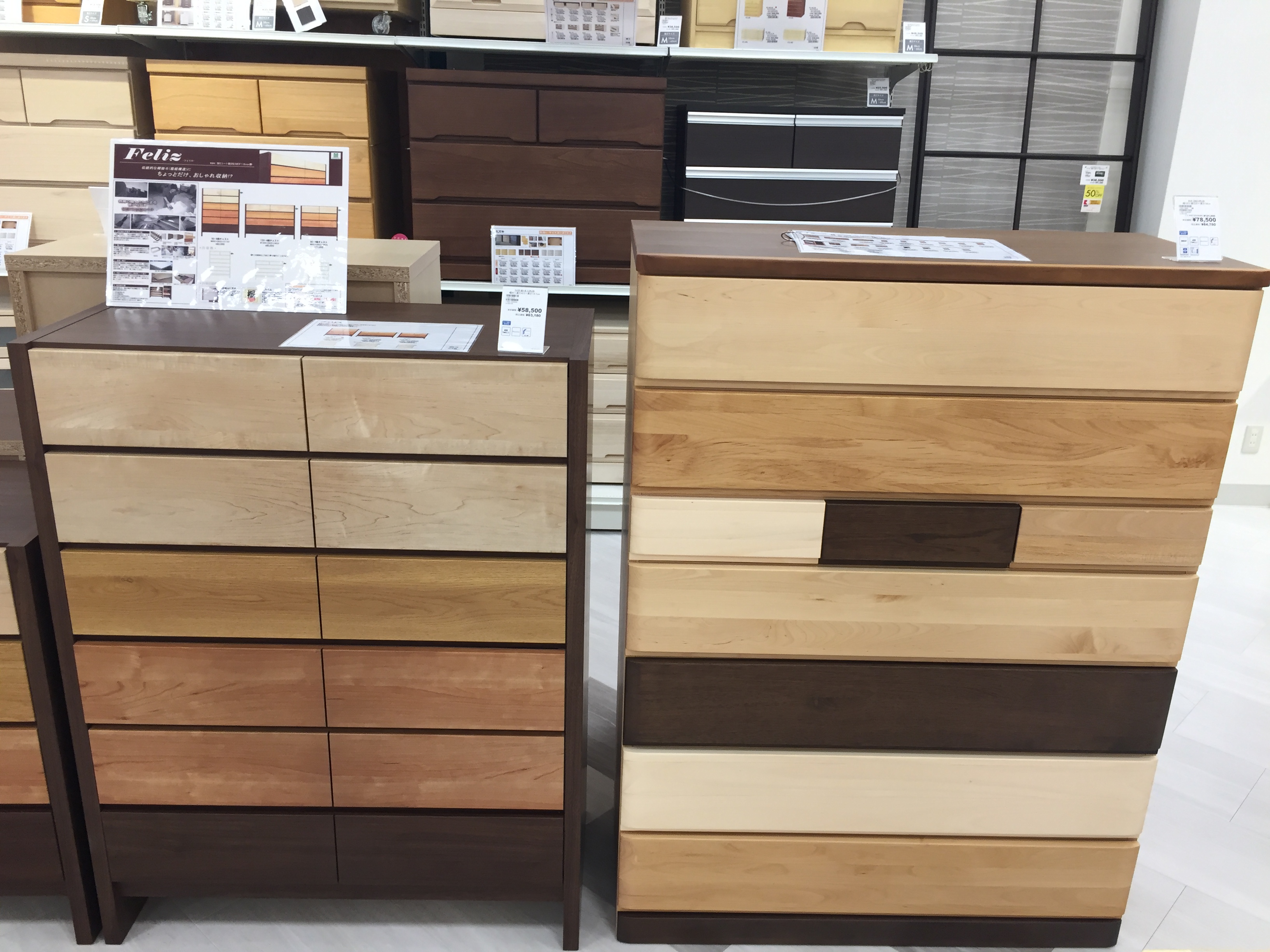 ぜひ実際に店頭で、収納量にあったお好みのチェストをお選びください♪