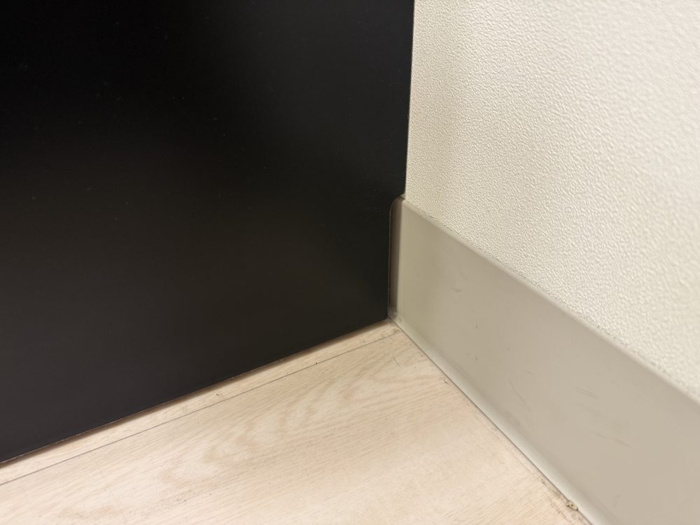 ラビンには巾木よけの切り込みをもう設け、壁と隙間なく設置でき、埃などの進入を防ぐ機能がございます!