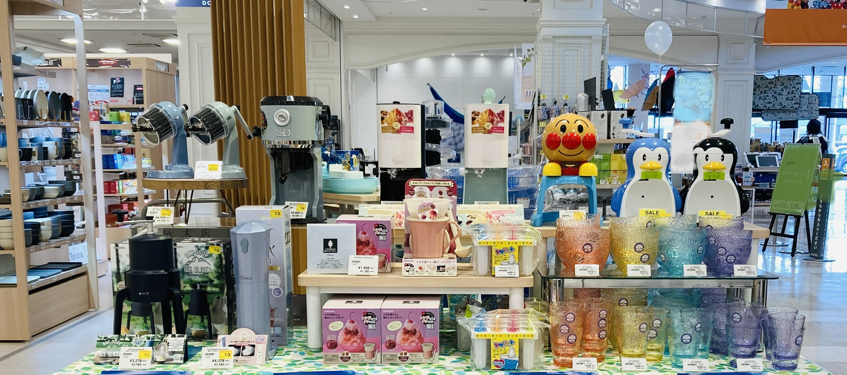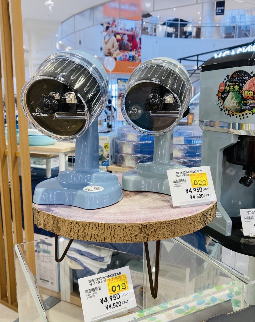 店頭にはいろんな種類のかき氷器やカラフルなボウルなどもご用意しております。