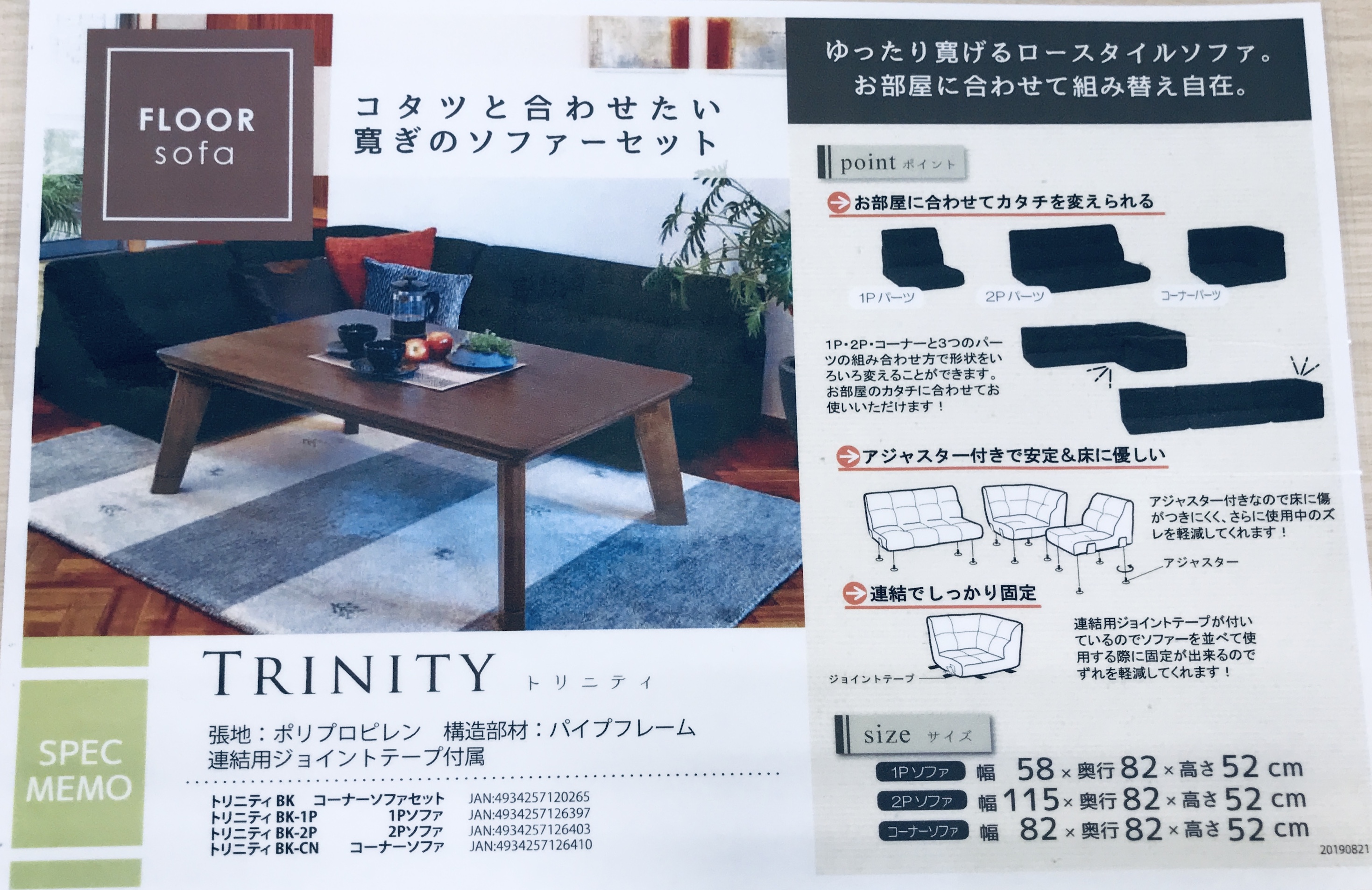 店頭人気のトリニティコーナー3点セットとテッドこたつテーブルの組合せ