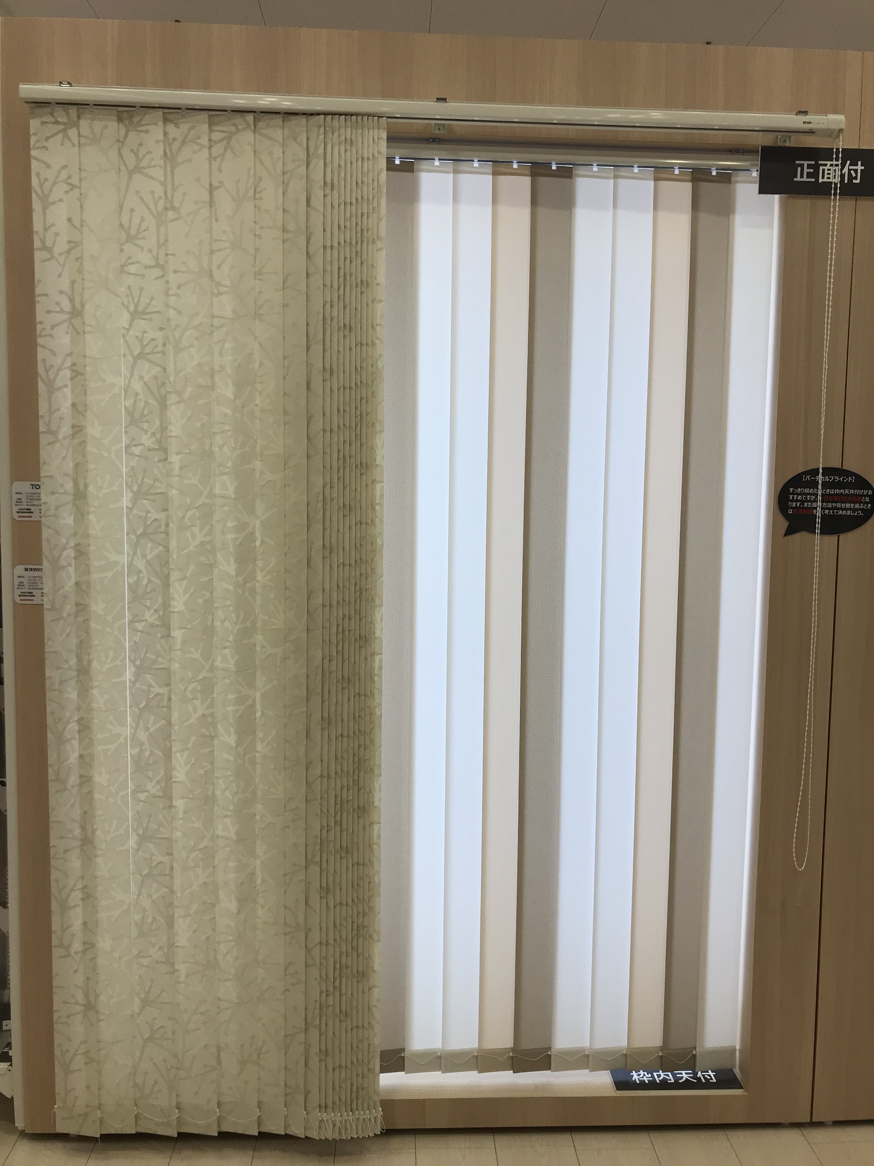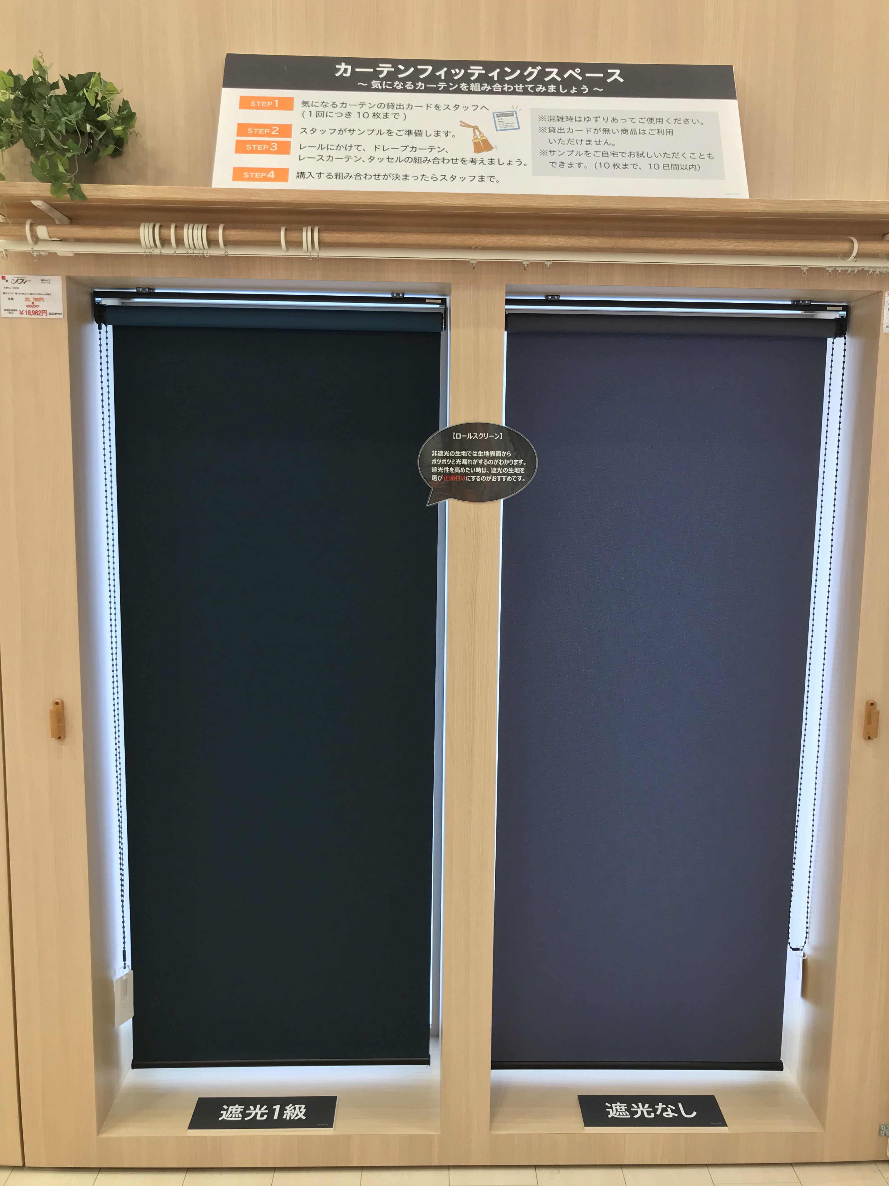 ロールスクリーンやブラインドの展示が増えました。