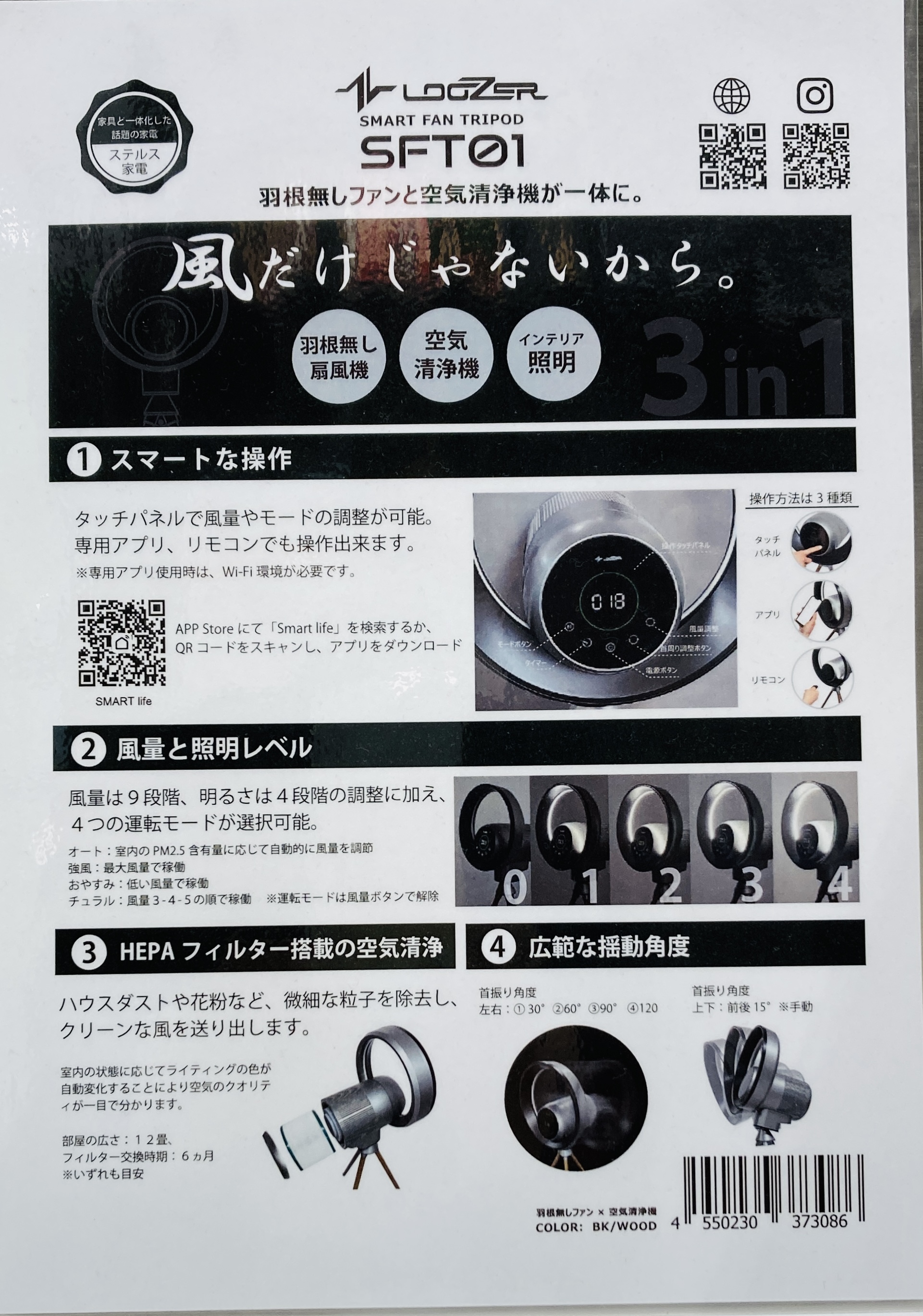 羽根無しファンと空気清浄機が一体になったハイブリットな扇風機