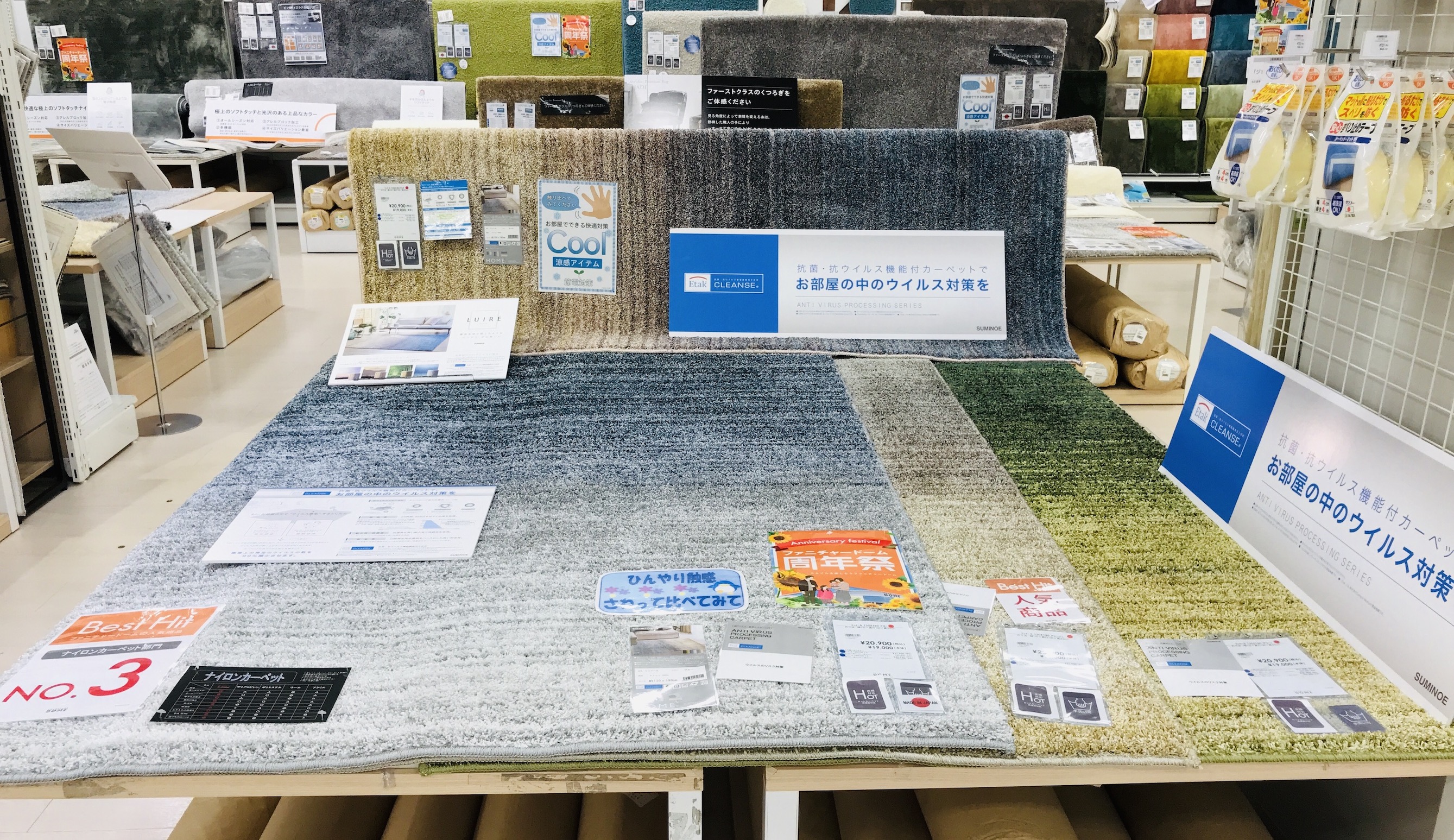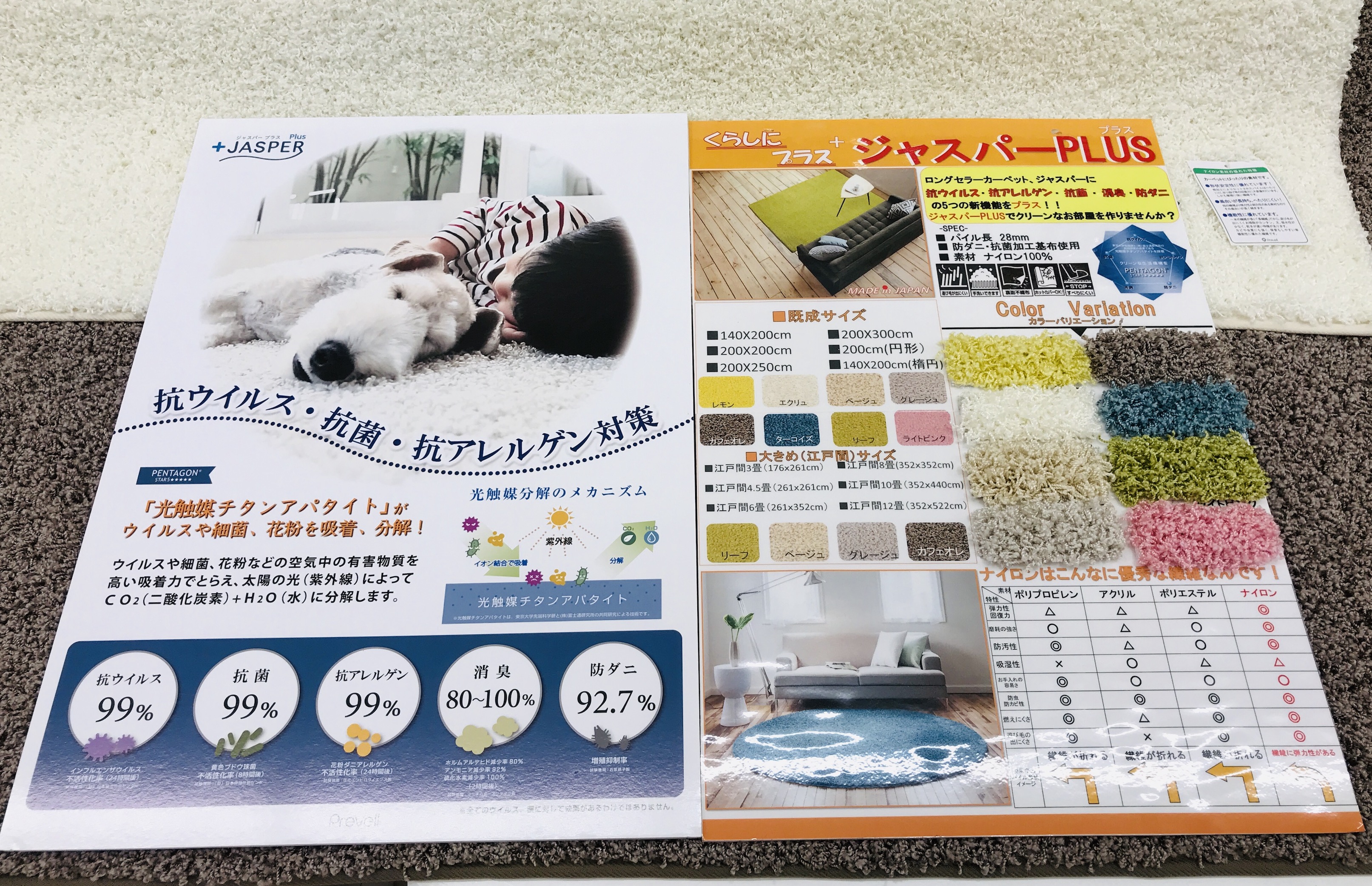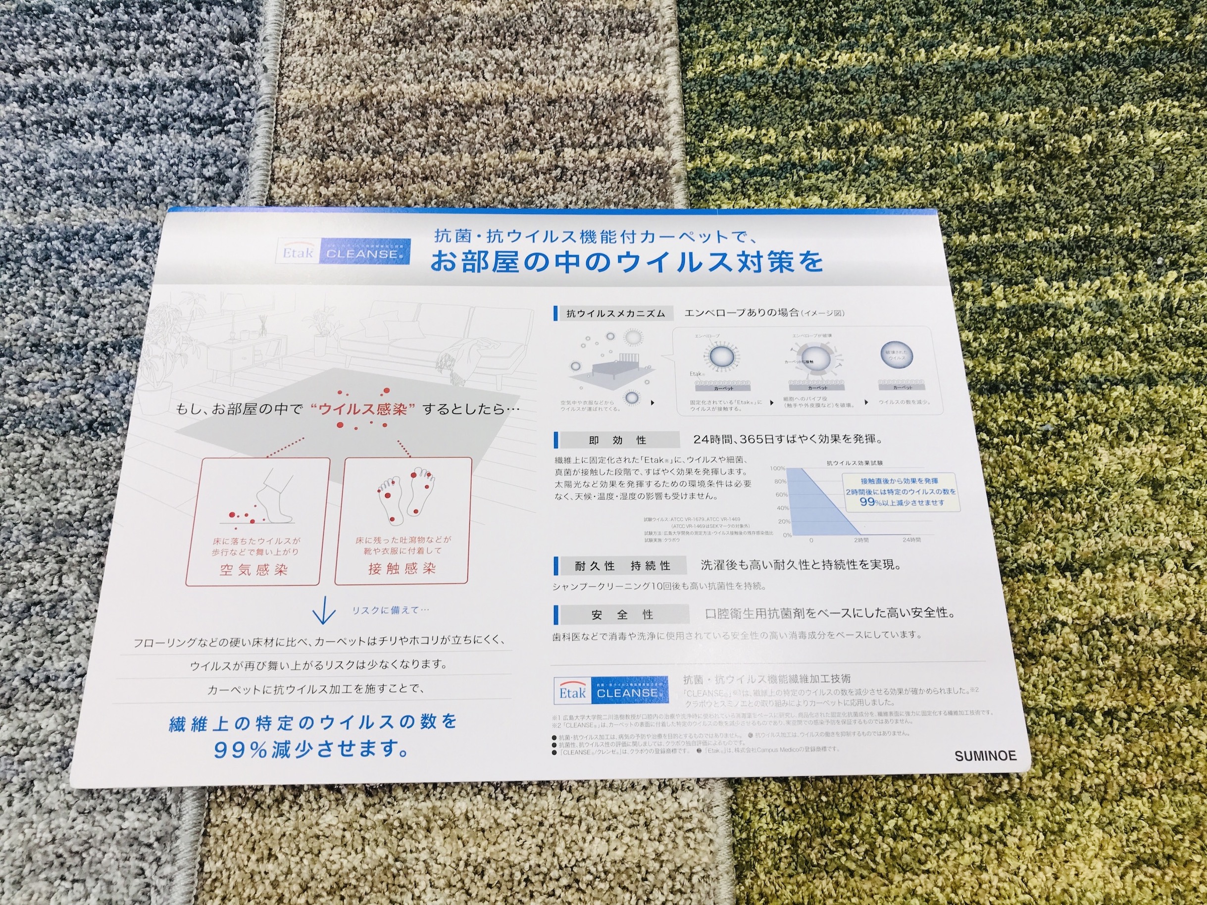 本日は、抗ウイルス・抗菌・抗アレルゲン機能付きカーペットご紹介。