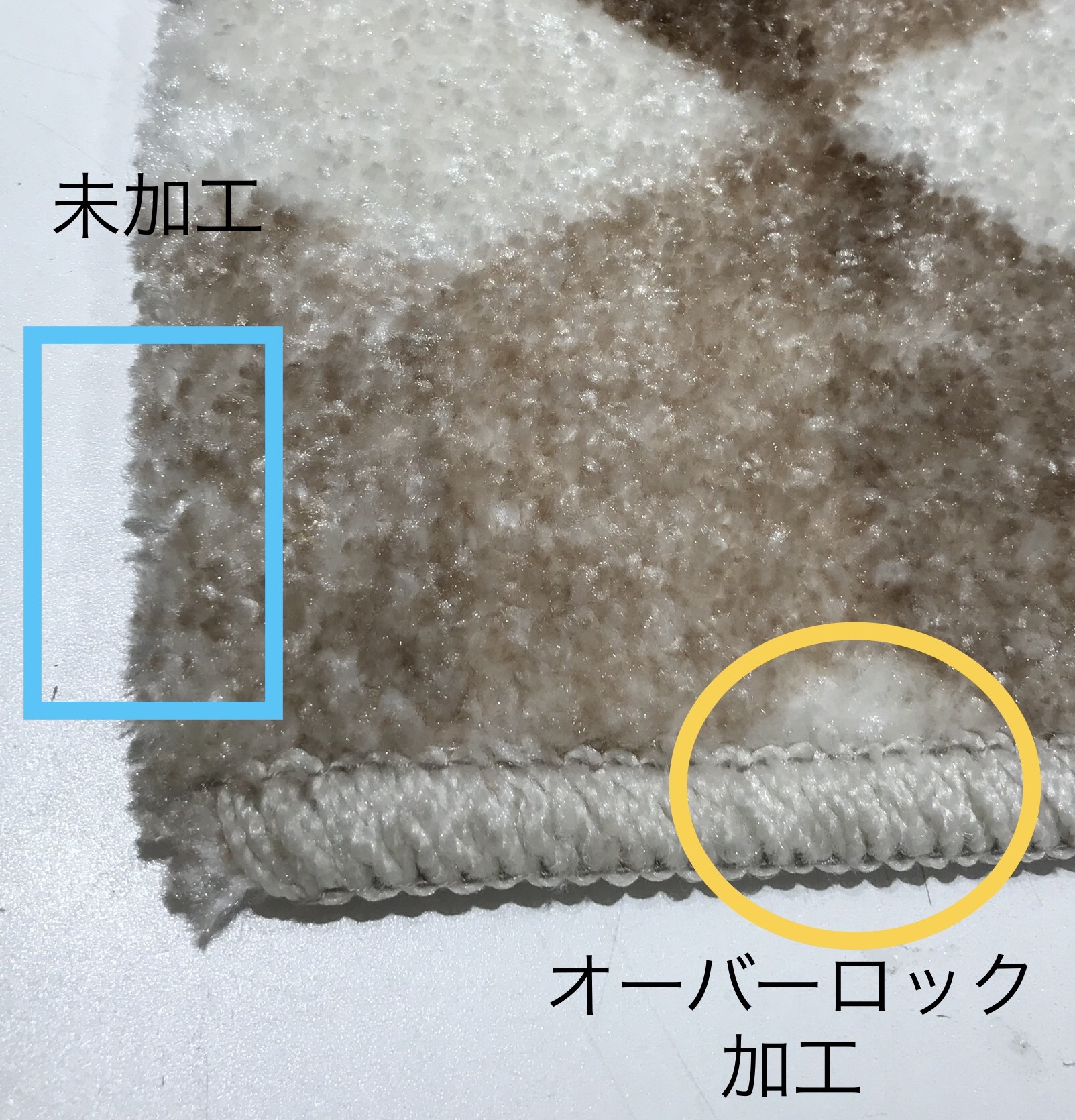 カーペットの周囲はオーバーロック加工でほつれないようになっております。