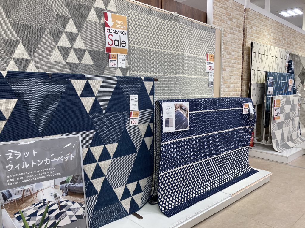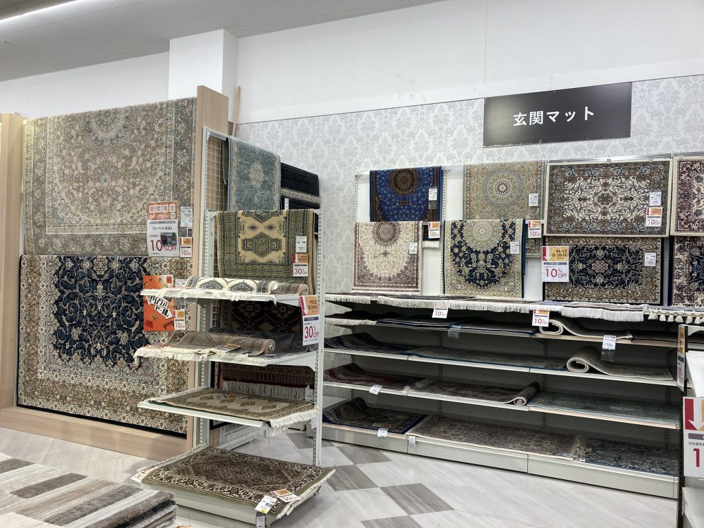 店頭人気の機械織ウィルトンカーペットや玄関マット
