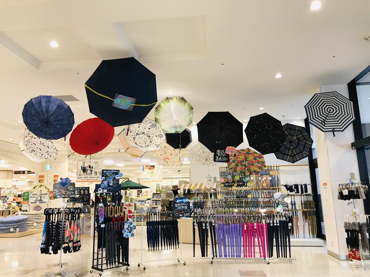 店頭にて、実際にビックサイズの折りたたみ傘をご覧ください。
