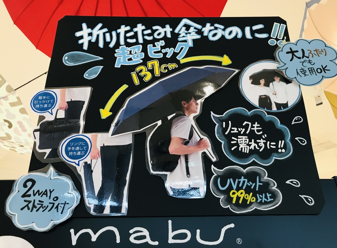 本日は、荷物や足元が濡れにくいビックサイズの折りたたみ傘