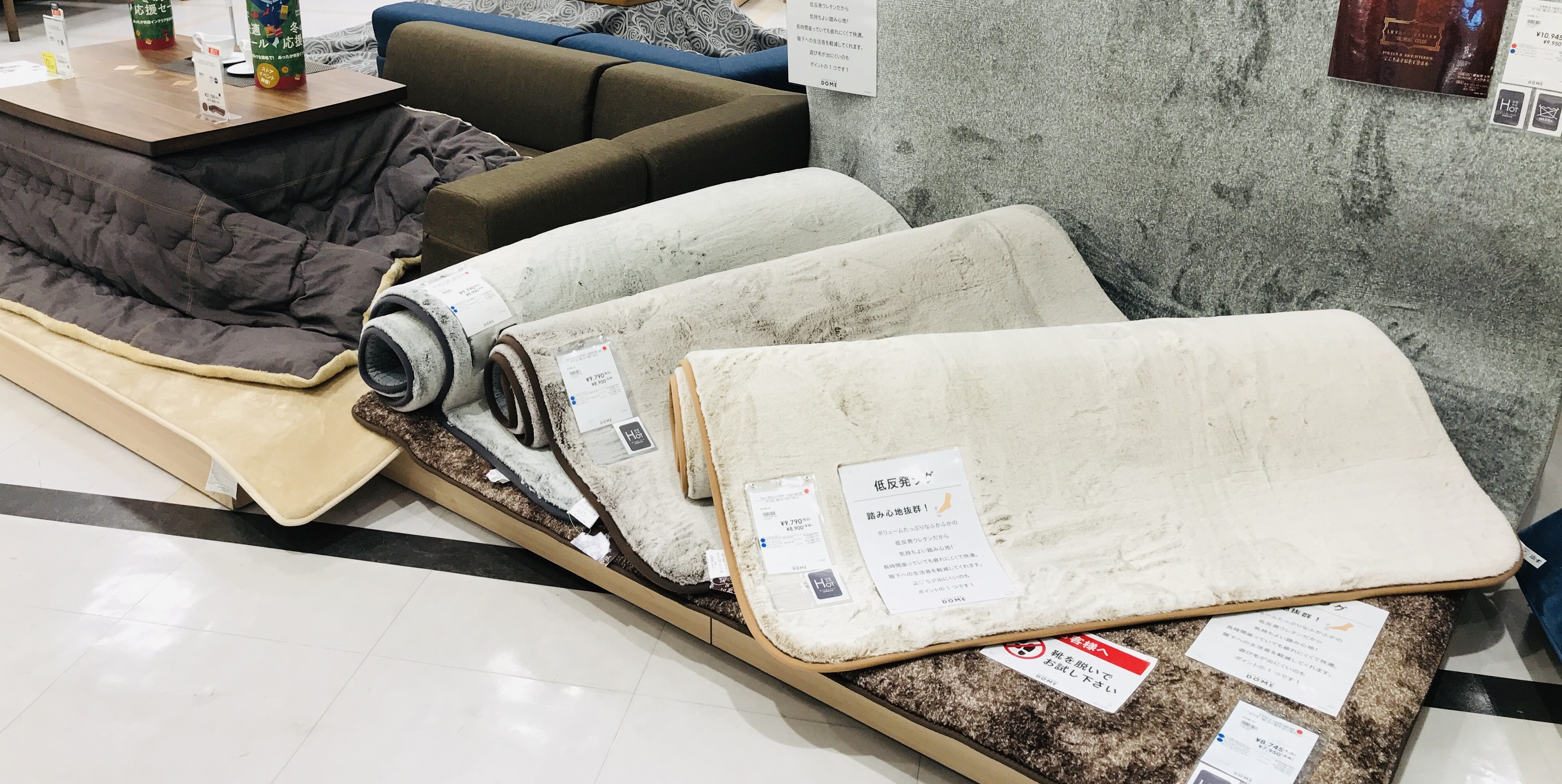 冬におすすめのカーペット・ラグをたくさん展示しております。
