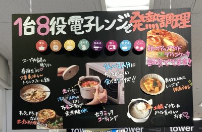 電子レンジを使った発熱調理器具の実演では