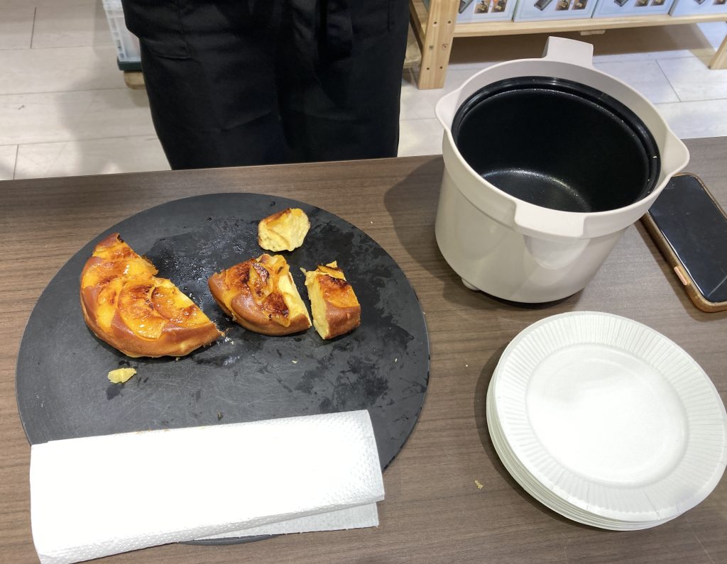 桃のアップサイドダウンケーキを試食していただきました