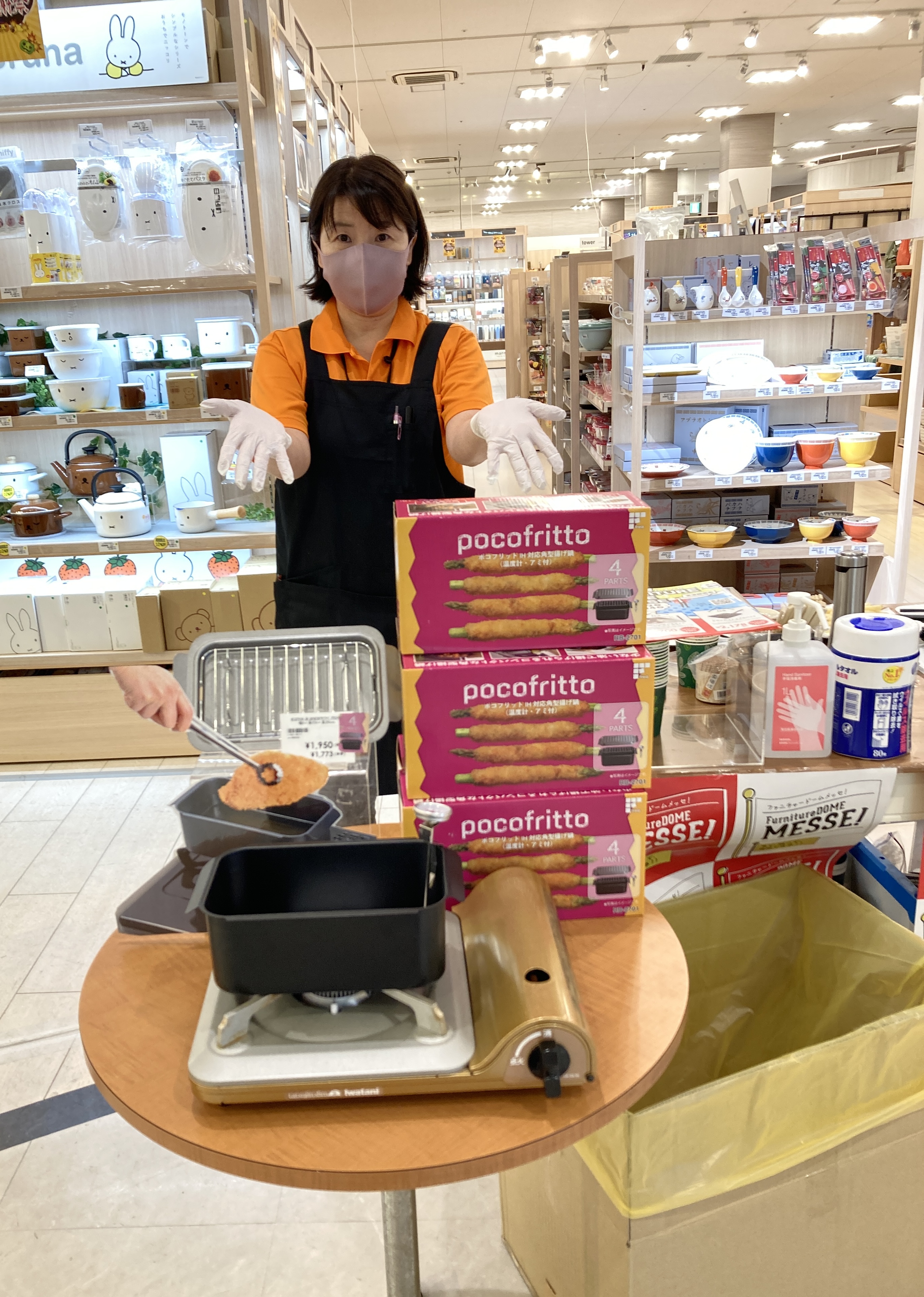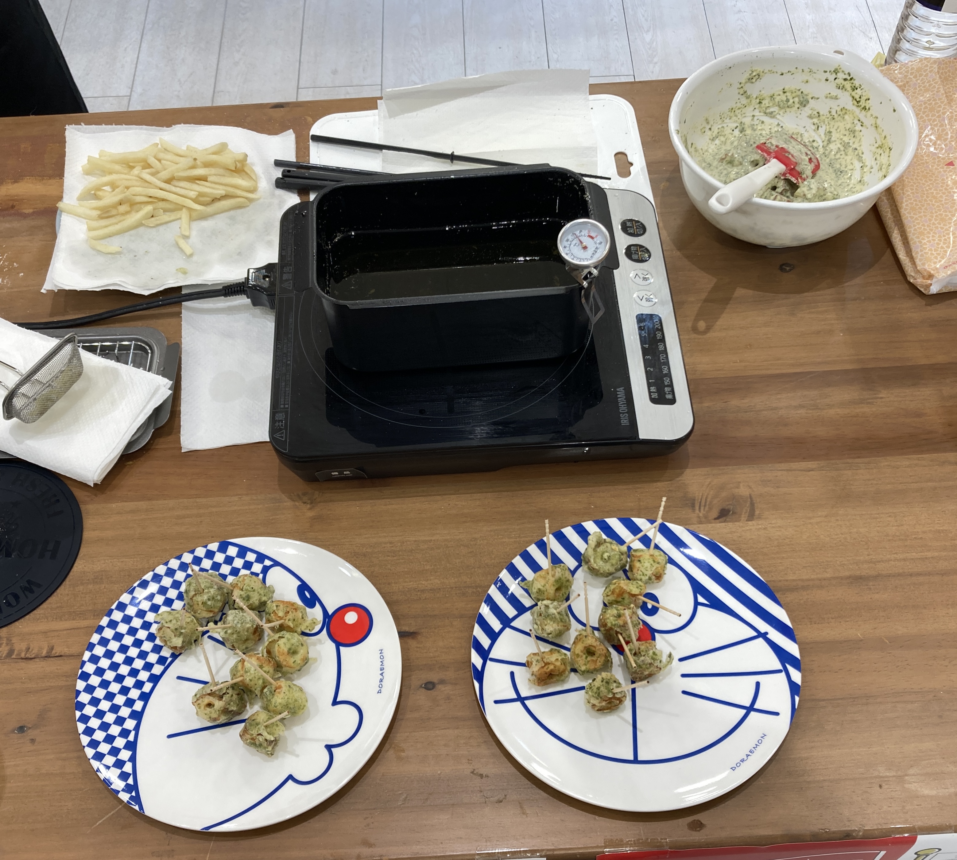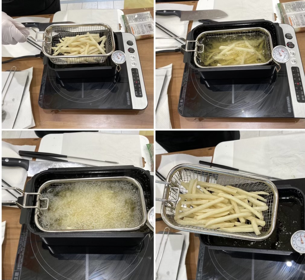 実演ではポテトとちくわの磯辺揚げ少量の油でカラッと揚がってました