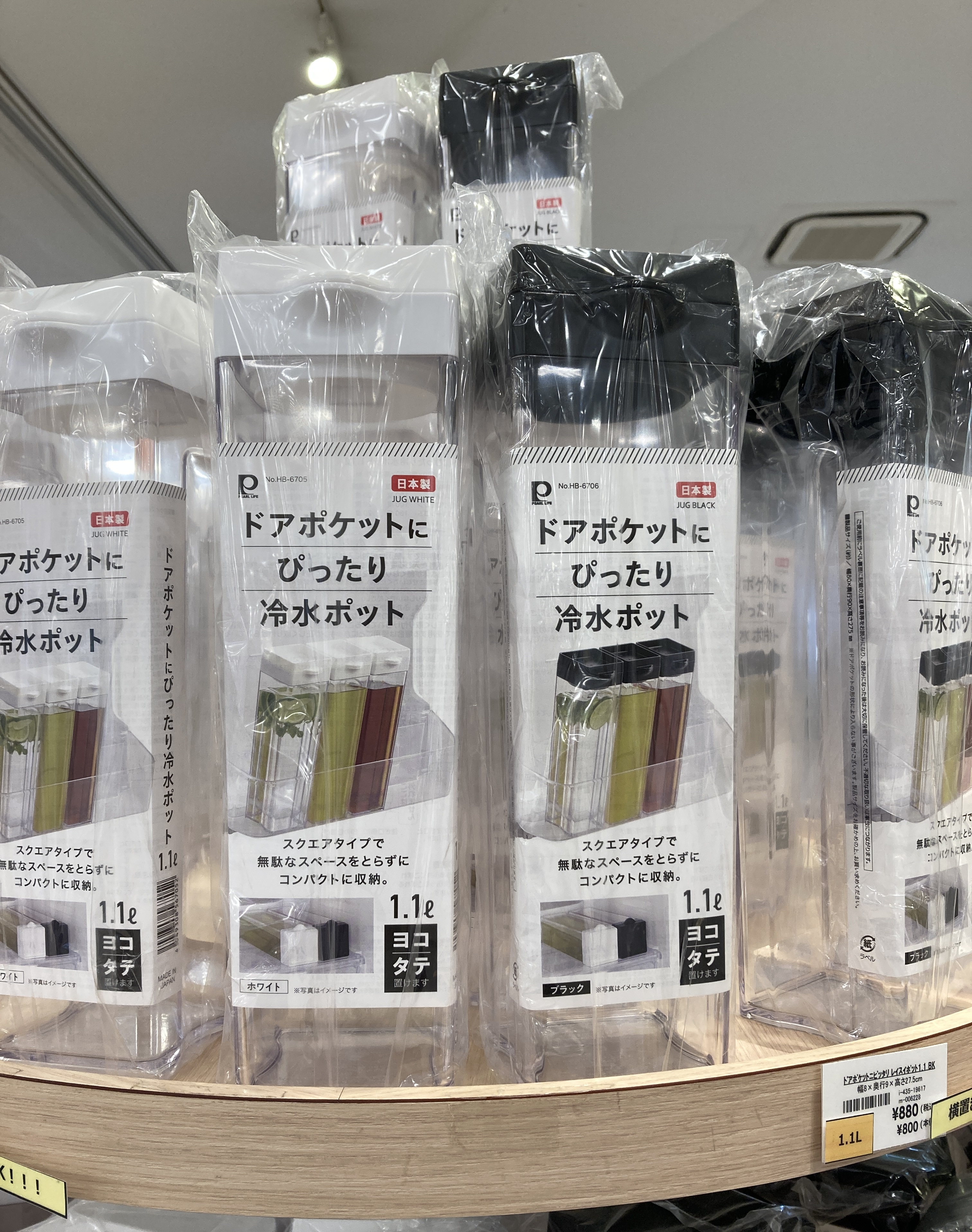 タテにも横にも置ける便利な『ドアポケットにぴったり冷水ポット』