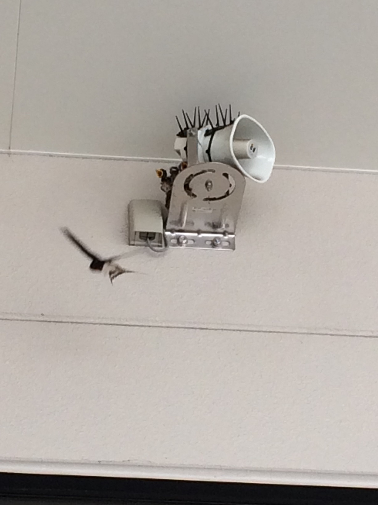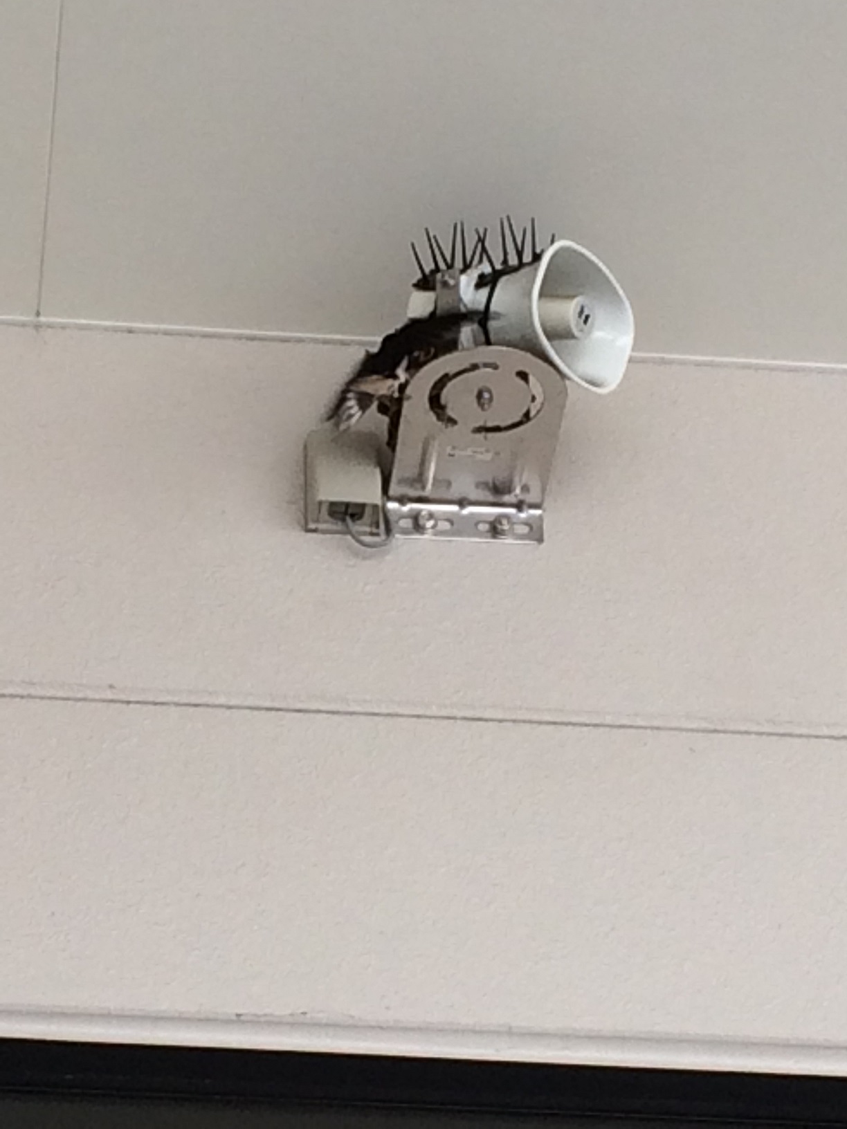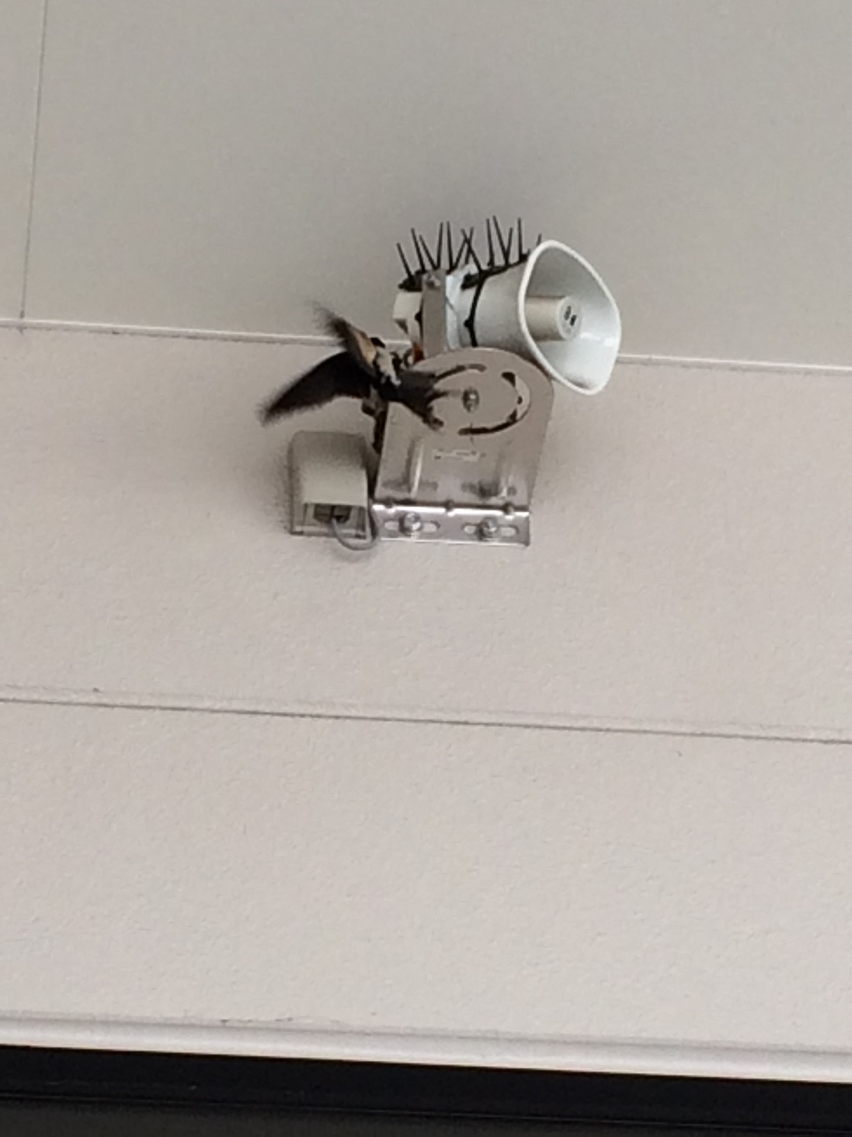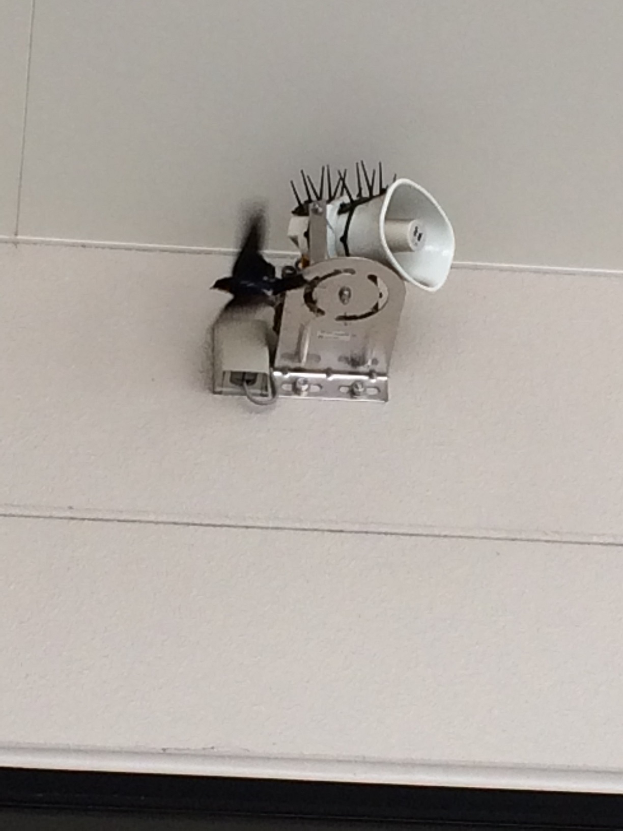 本店入り口右横のスピーカーの部分にツバメが巣をつくりました!