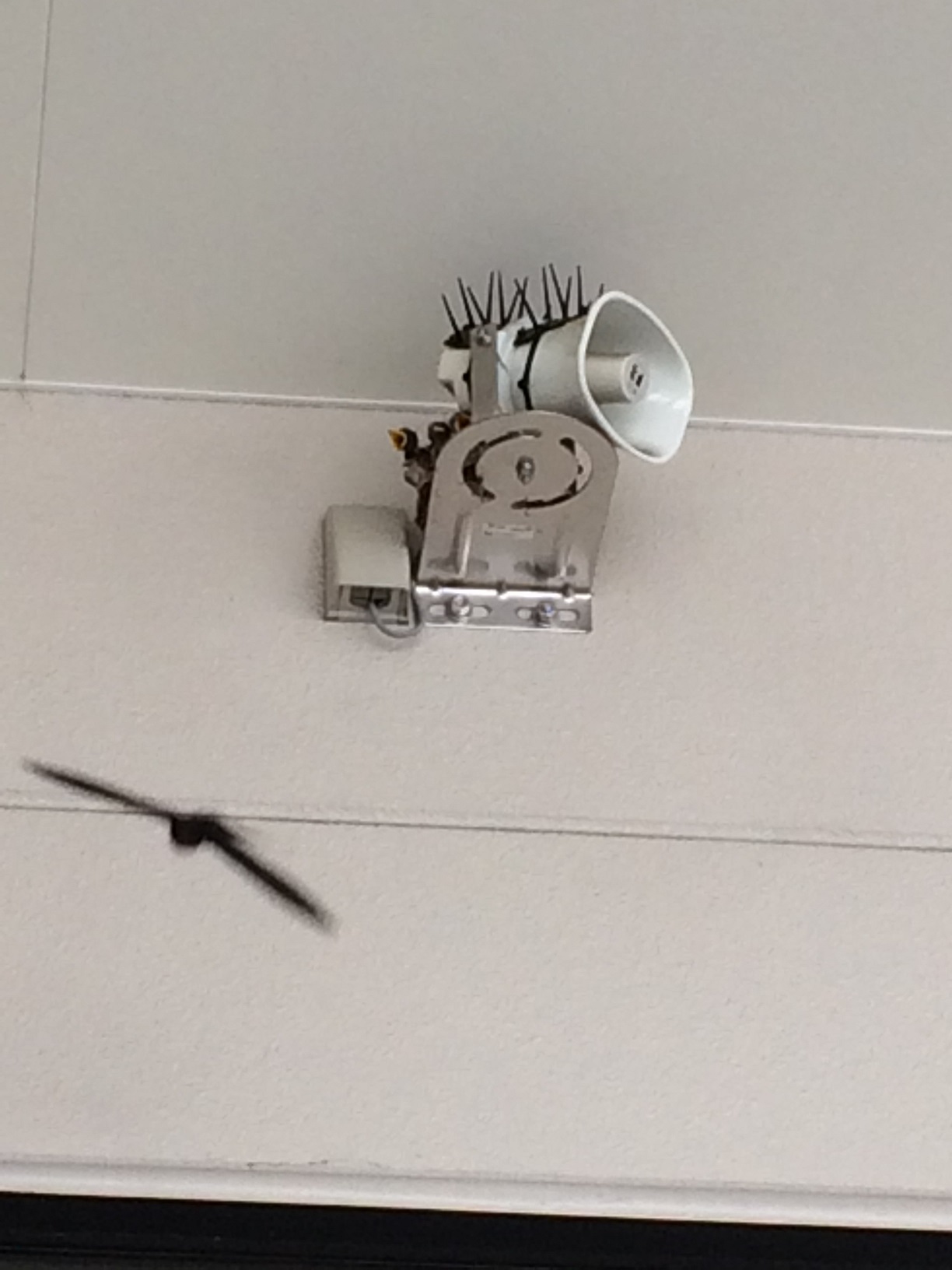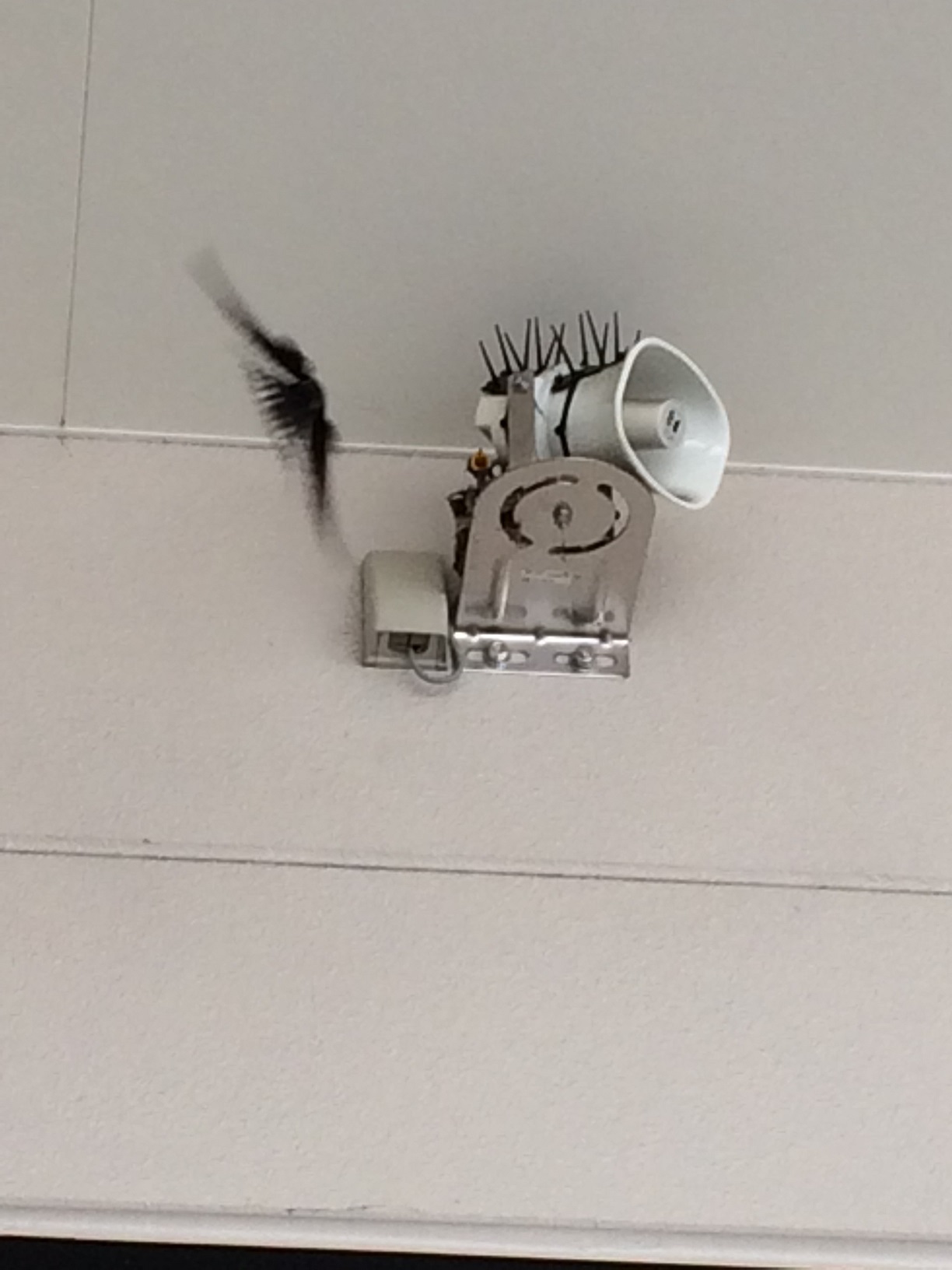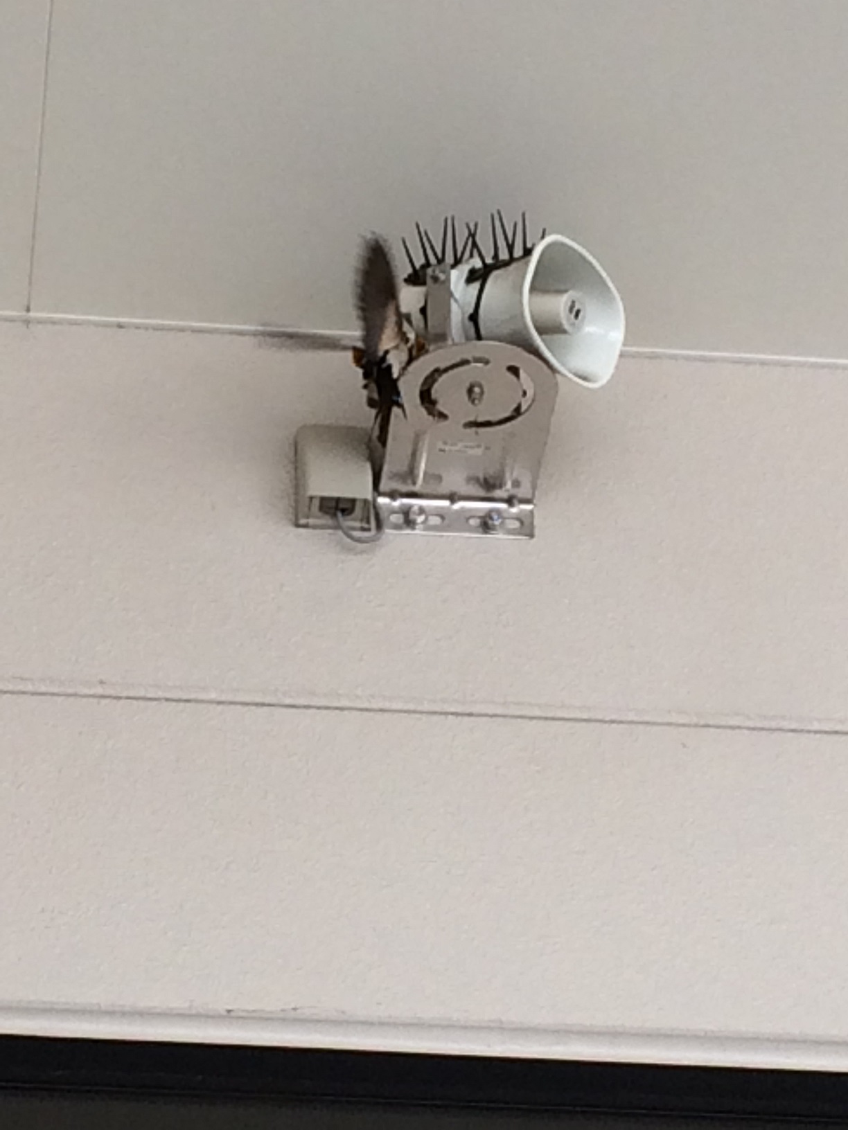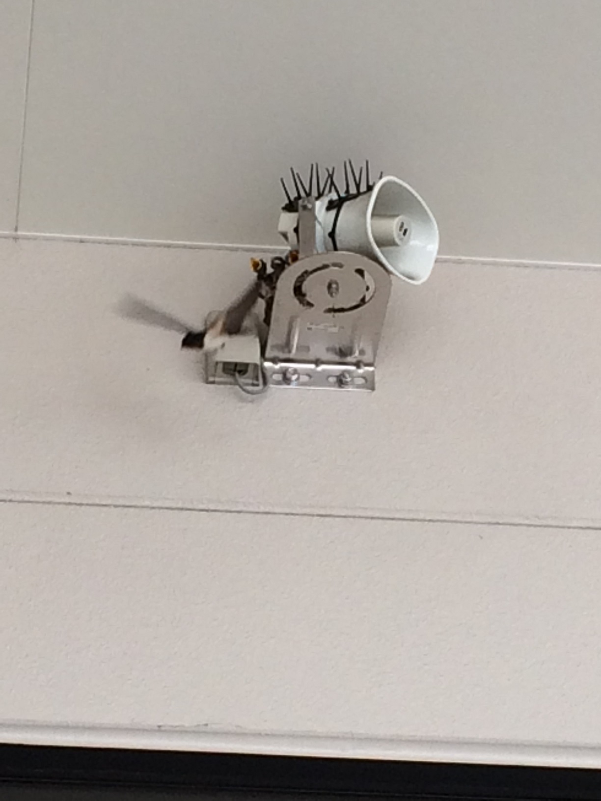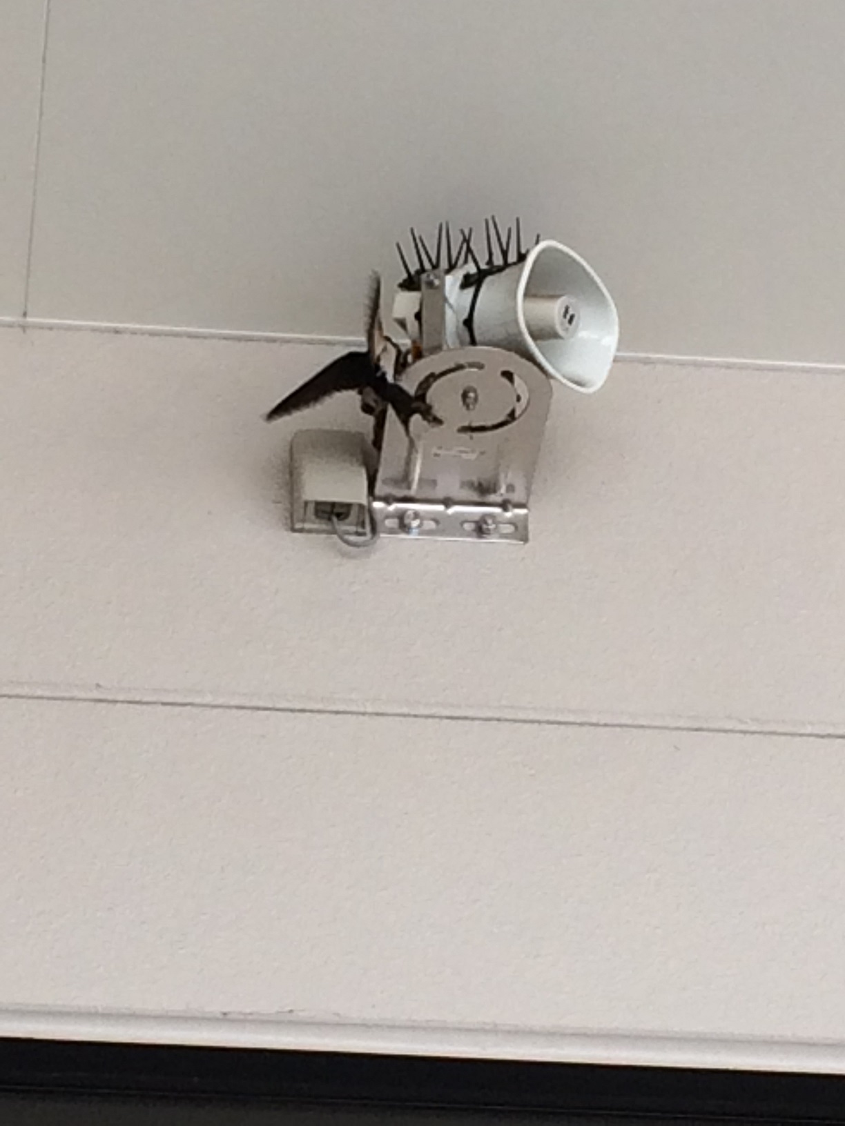 本店入り口右横のスピーカーの部分にツバメが巣をつくりました!