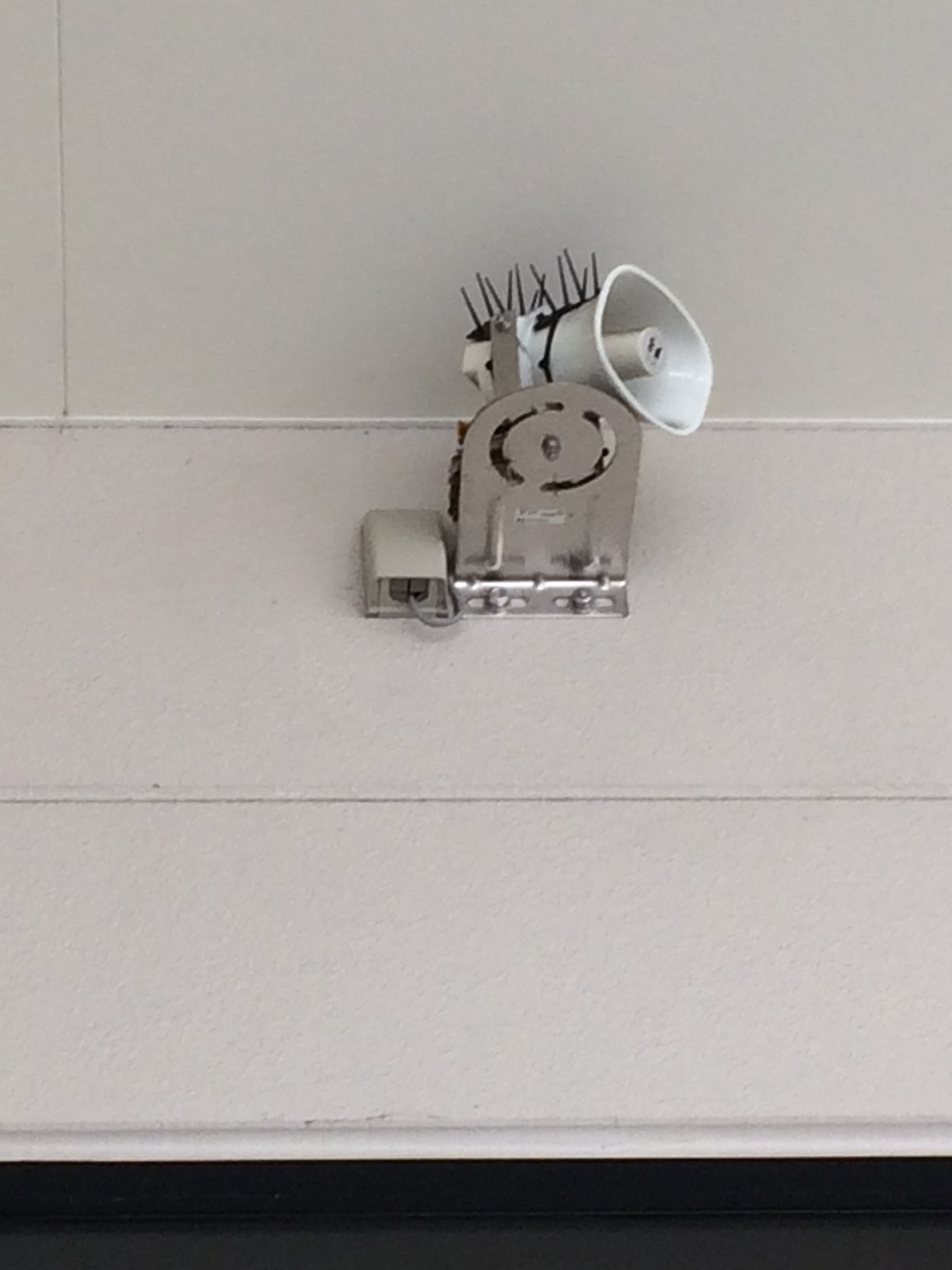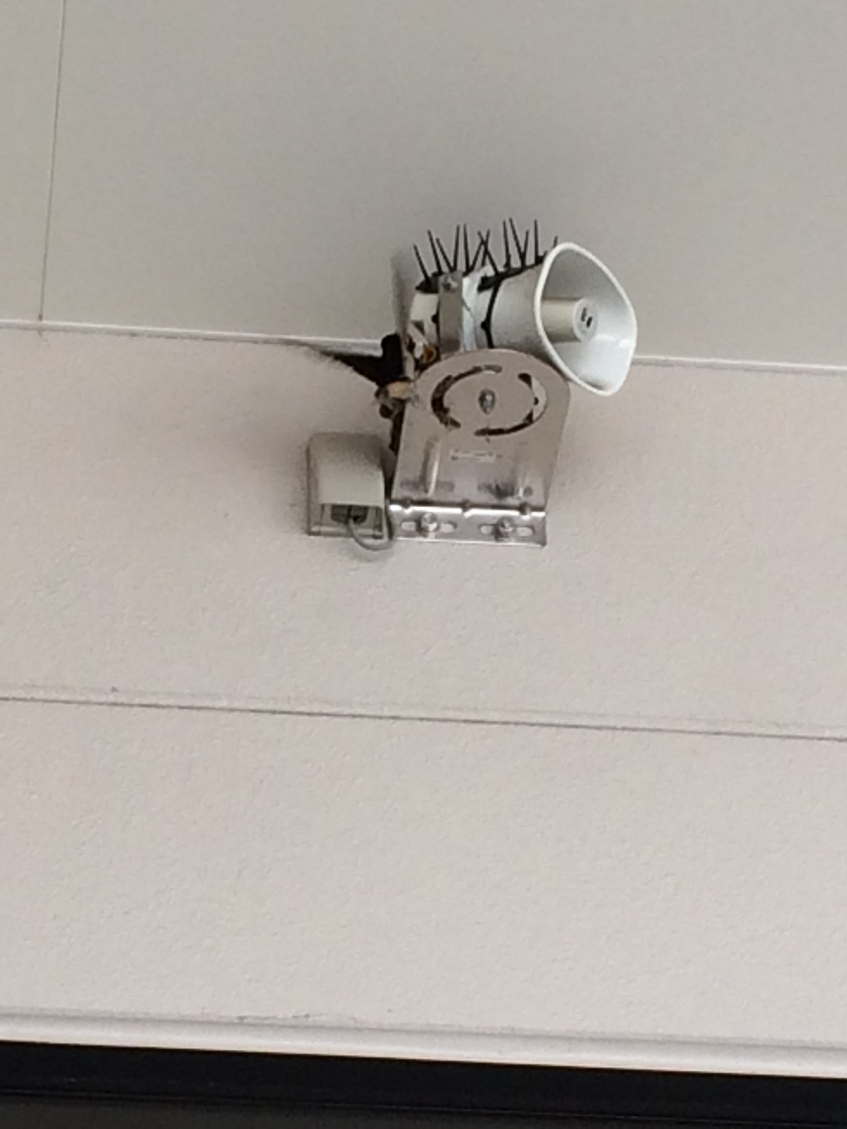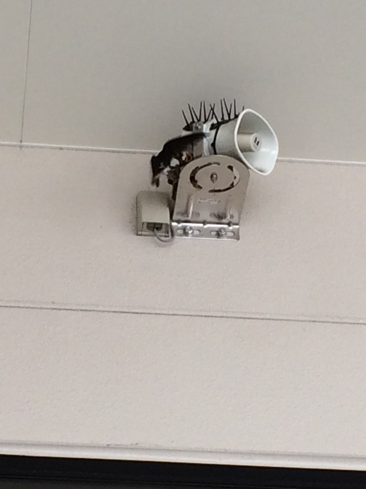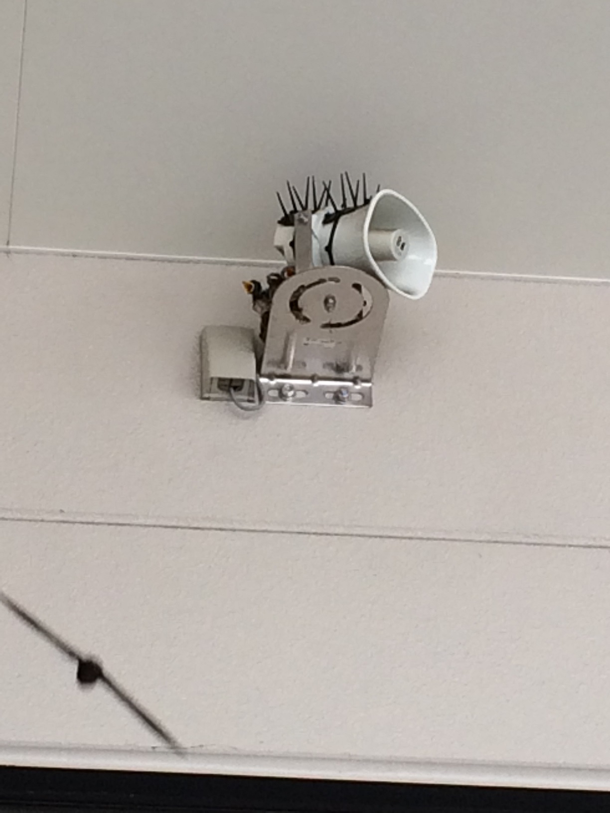本店入り口右横のスピーカーの部分にツバメが巣をつくりました!