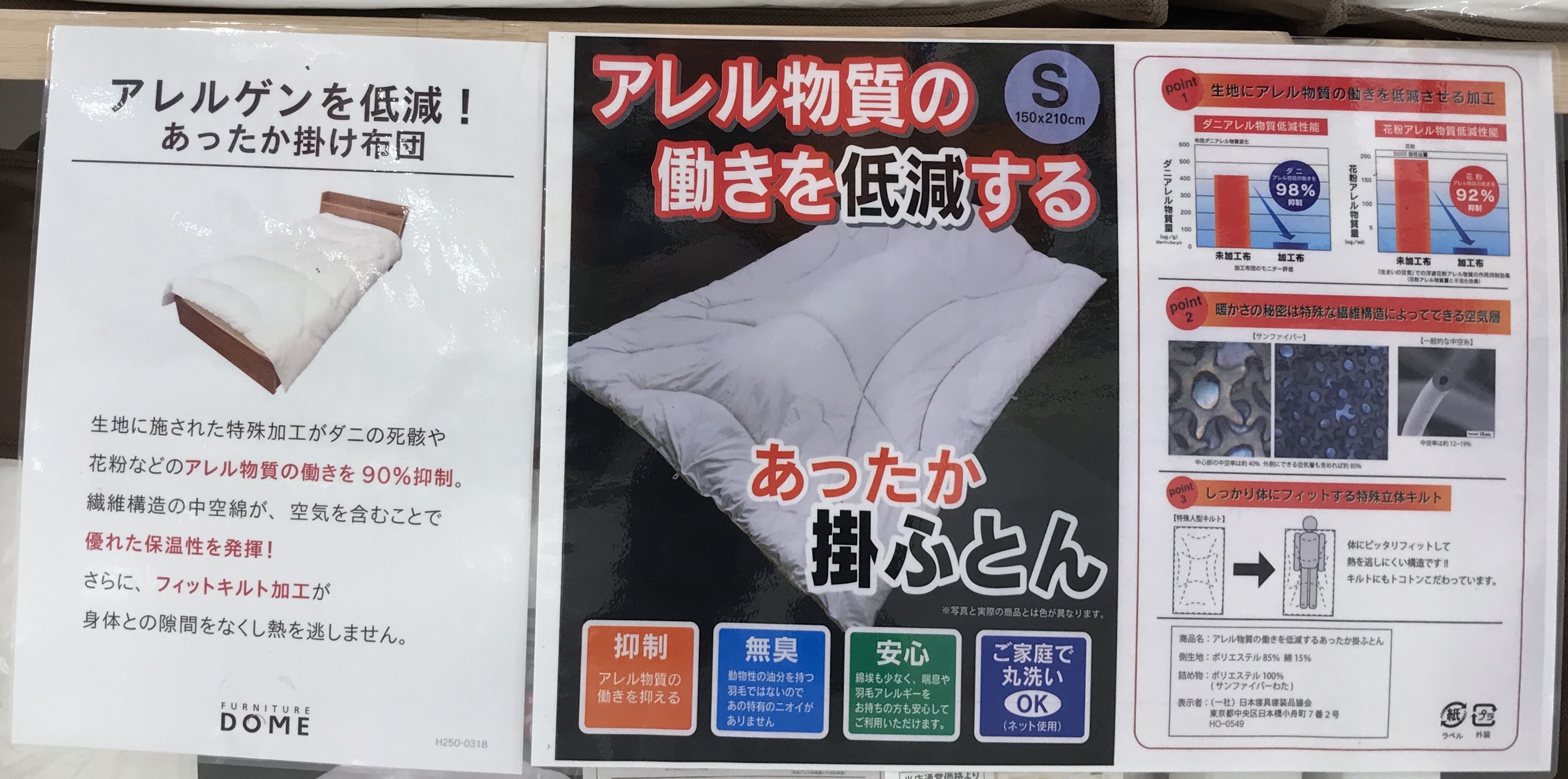 ダニの死骸や花粉が付きにくい加工が施されている掛けふとん
