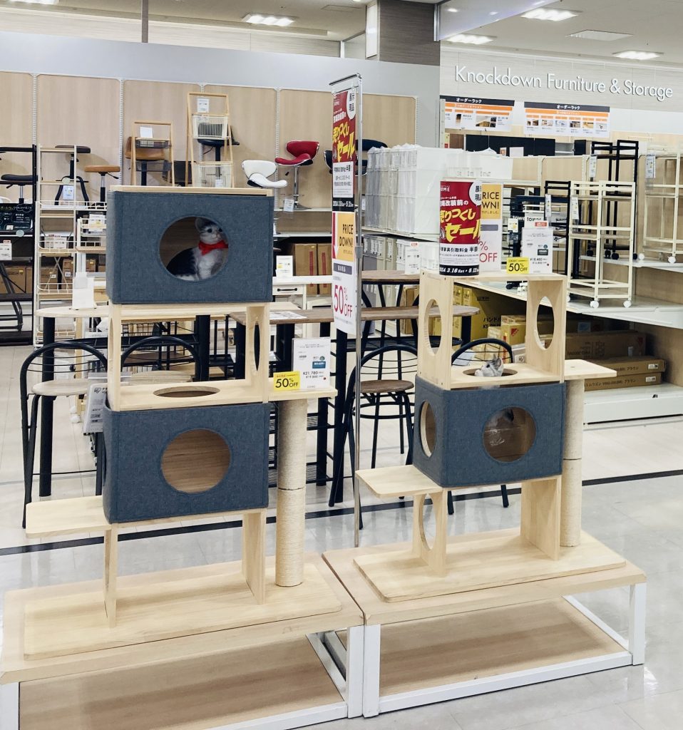 ねこが心地よく遊べるキャットタワー天然木を使ったナチュラルなデザイン
