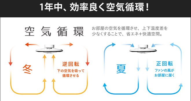 上下温度差を少なくすることで、省エネ+快適空間を実現します。