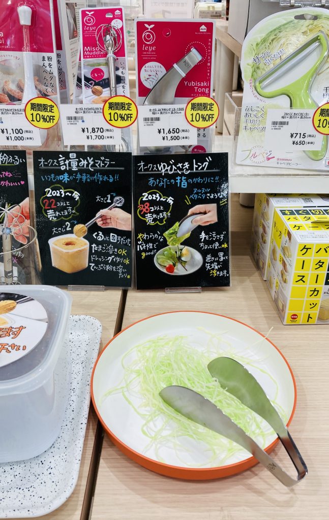 ハンドプロセッサー・キャベツピーラー・マーナ調味料ラック・たためるまな板なども売れてます。