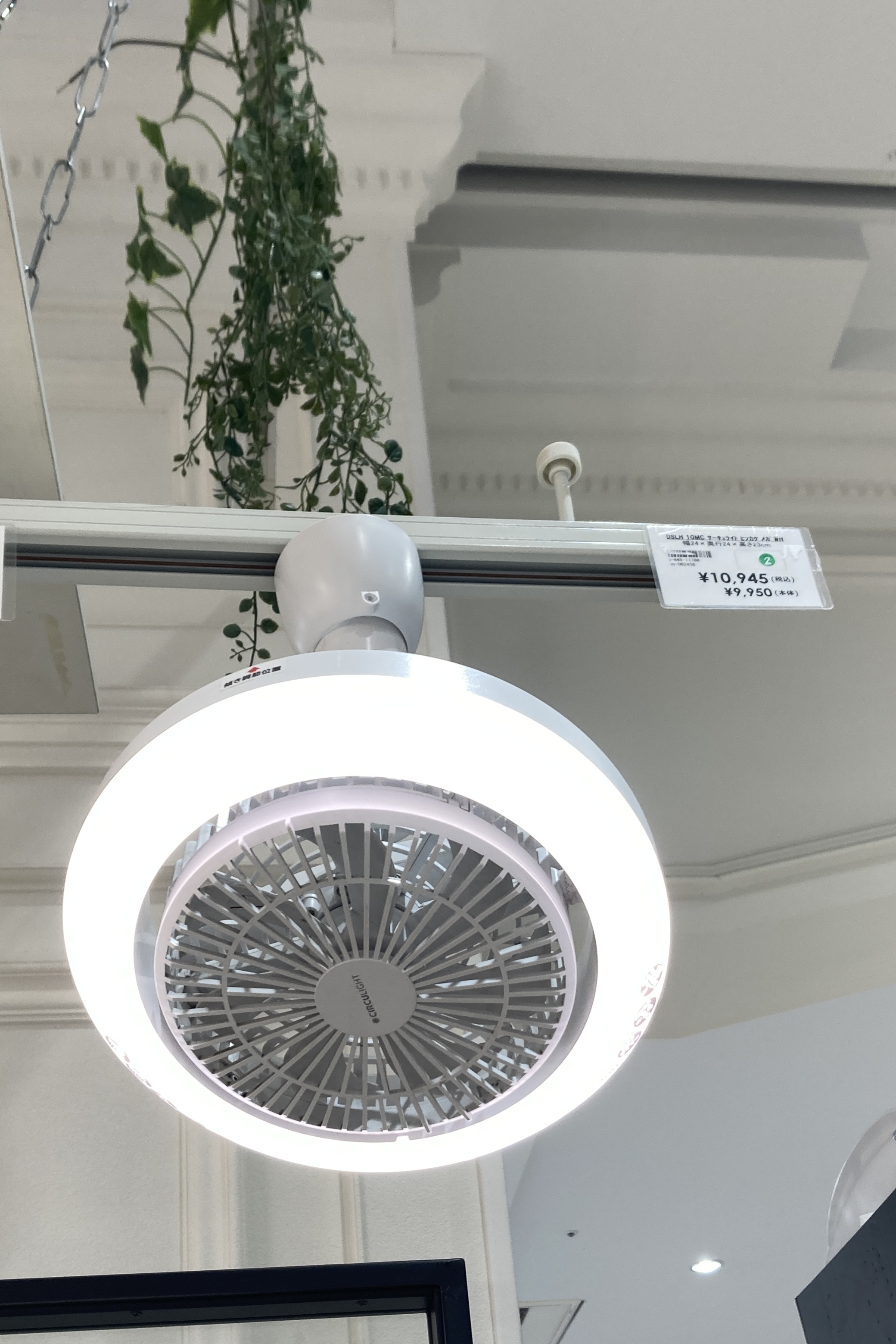 ダクトレールに取付られる専用のファン(首振り機能付)