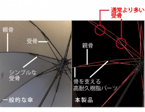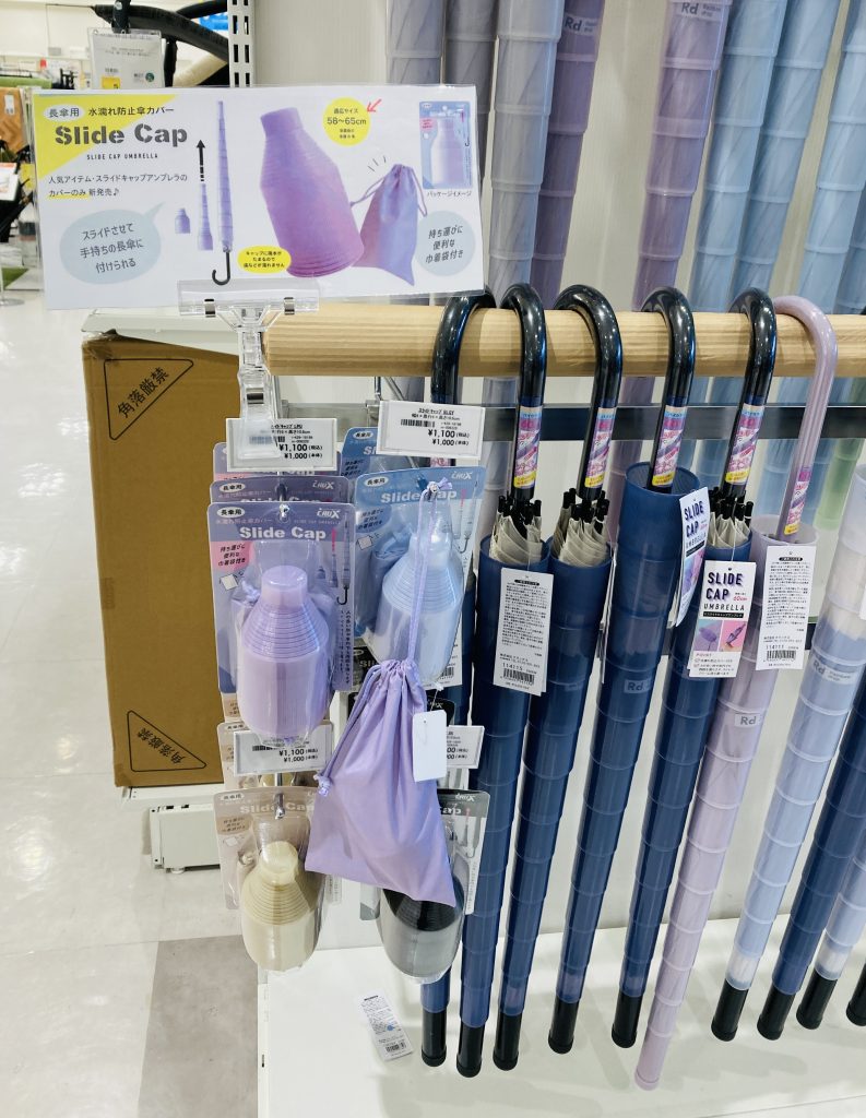 『スライドキャップ』(58cm〜65cmのサイズで親骨8本までの長傘サイズに対応)