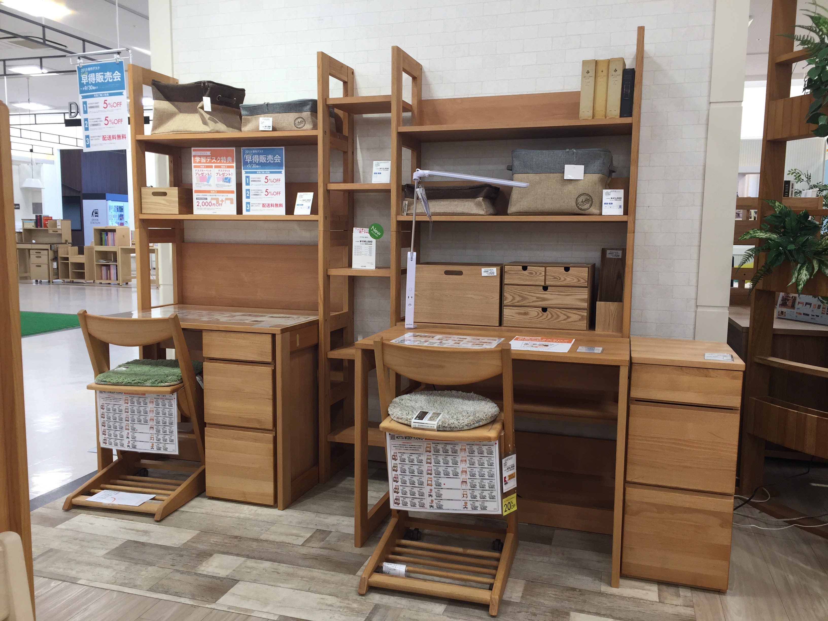 9月30日まで『2019新作デスク 早得販売会』を開催中です。