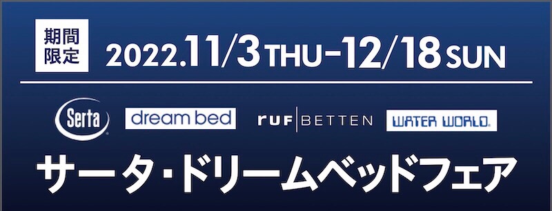 11月3日(木)から開催中の『サータ・ドリームベッドフェア』が、まもなく、12月18日(日)で最終日を迎えます。