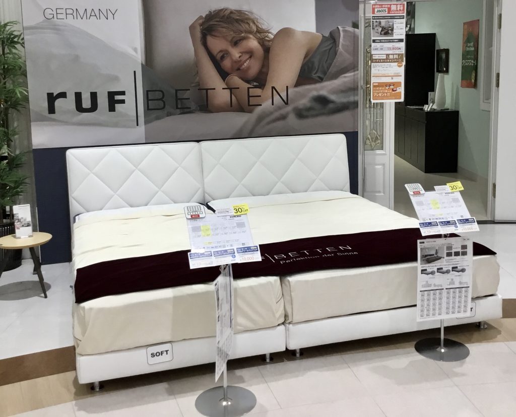 ドイツの「RUF」社のベッドフレームにソフトなマットレスがのったシングル+セミダブル 30%OFF!