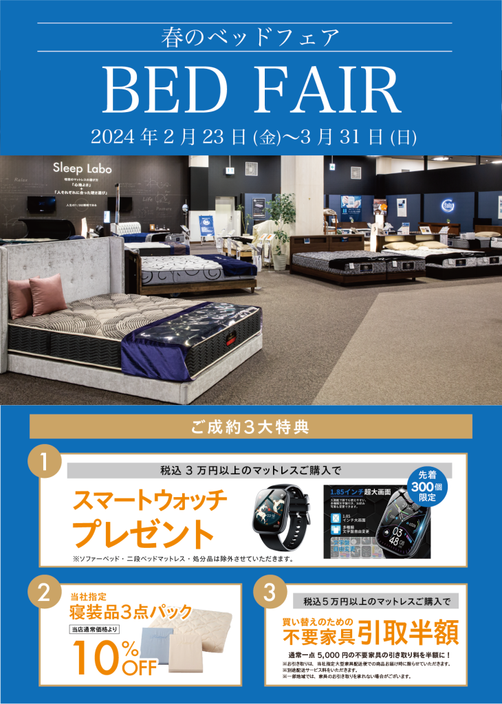 また、『サータ・ドリームベッドフェア』と並行して、『春のベッドフェア』も開催しております。