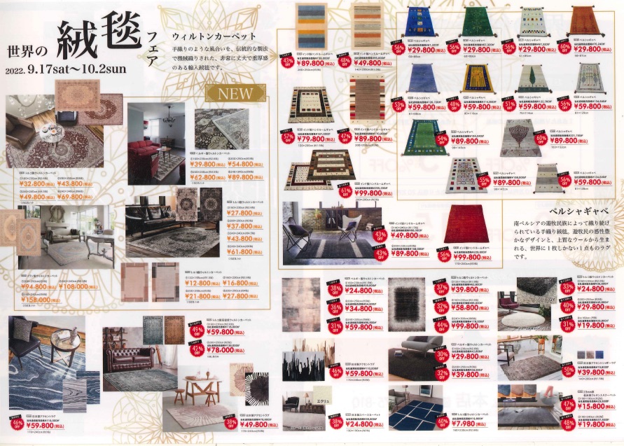 お買得商品から高級ジュウタンまで豊富な品揃えとなってます