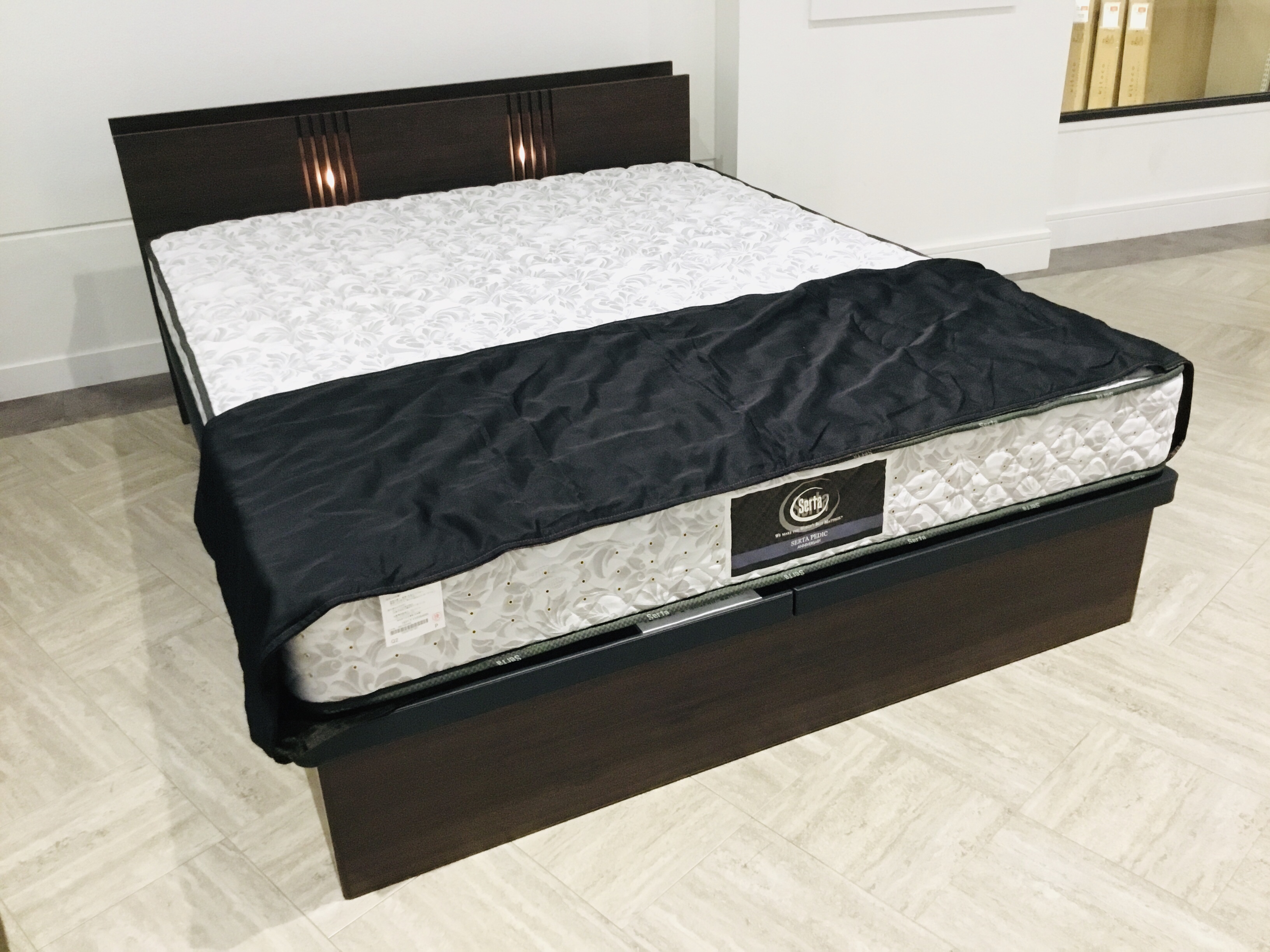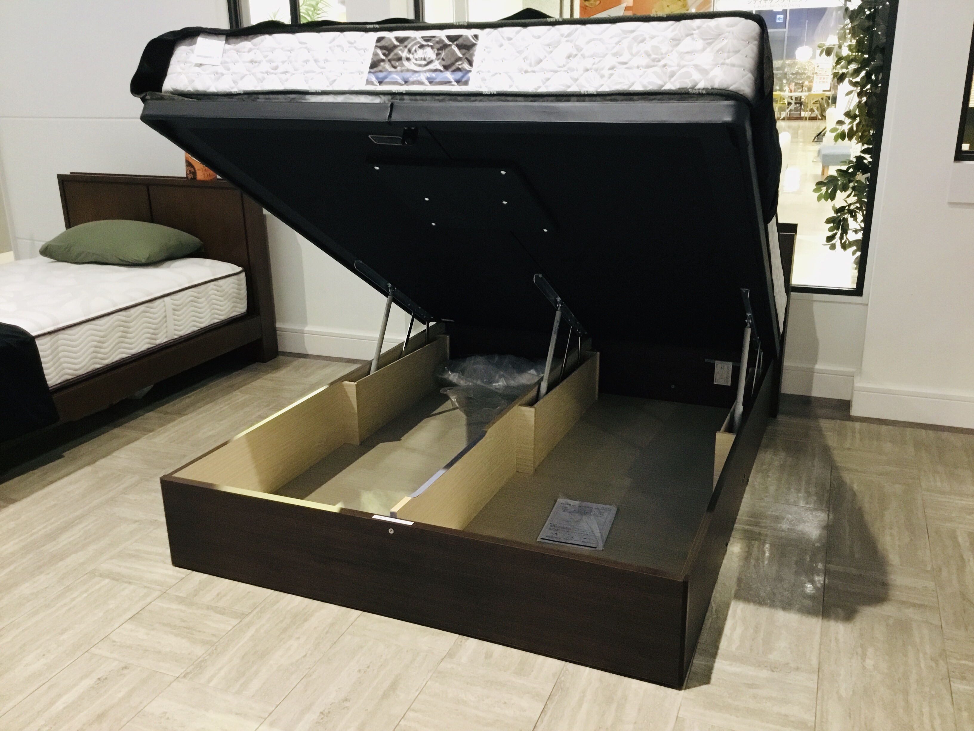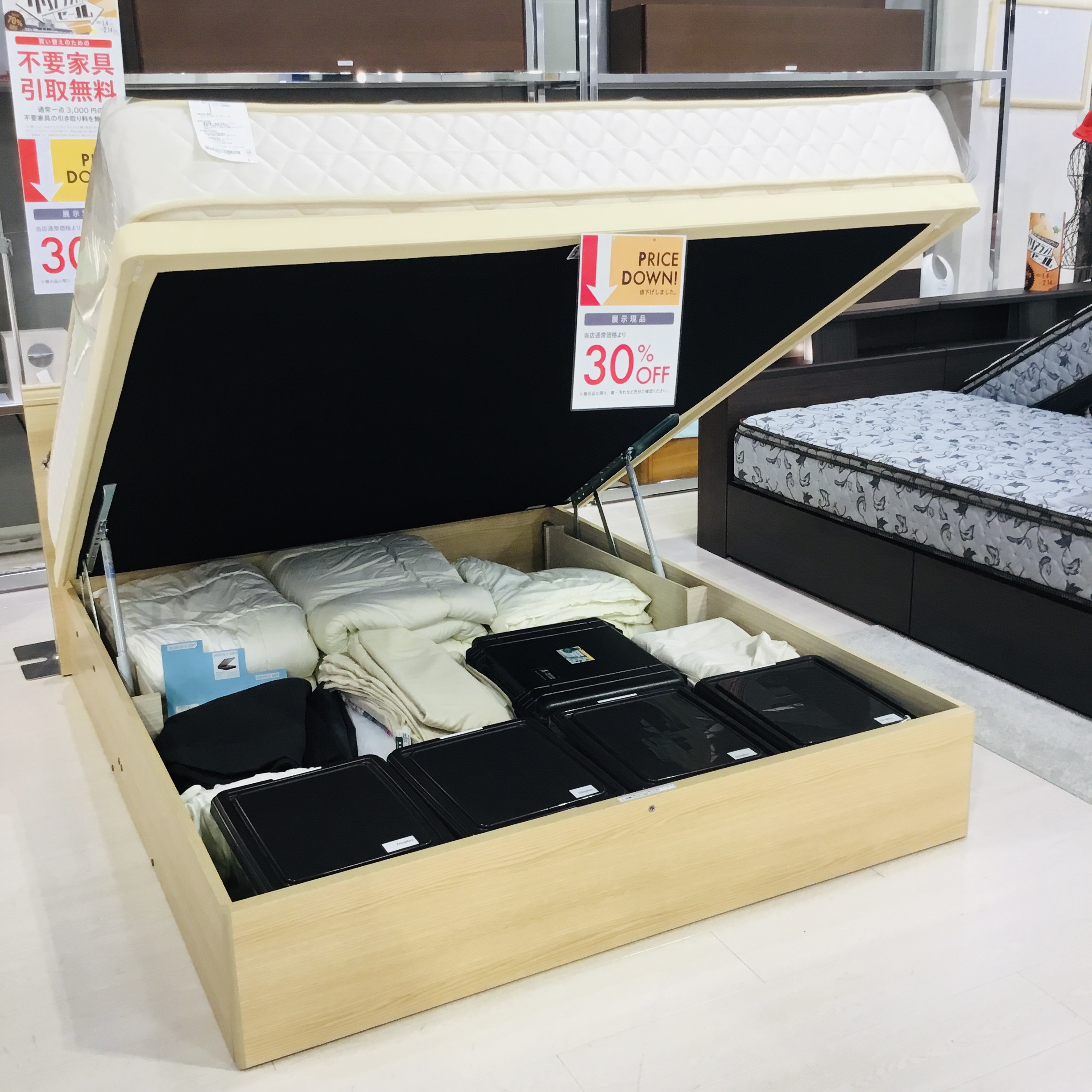 ⬇︎Q(クイーン)サイズの跳ね上げ収納ベッド。¥315,000 → 30%OFF!