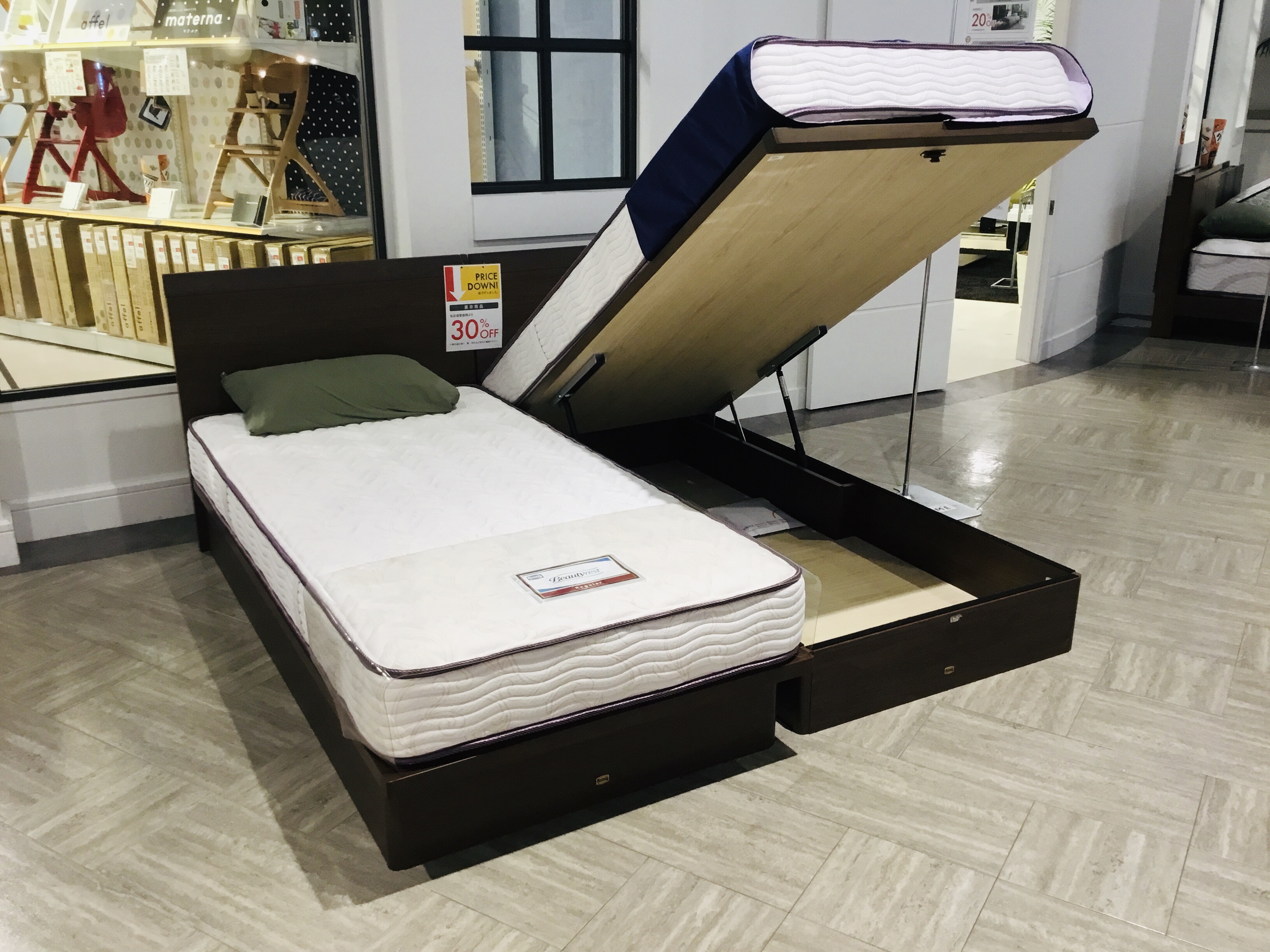 ⬇︎S(シングル)サイズの跳ね上げ収納ベッドが2台。¥171,600 → 30%OFF!