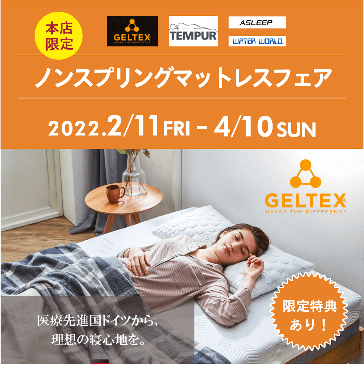 また、『ノンスプリングマットレスフェア』も同時開始で、こちらは4月10日までの開催となっております。