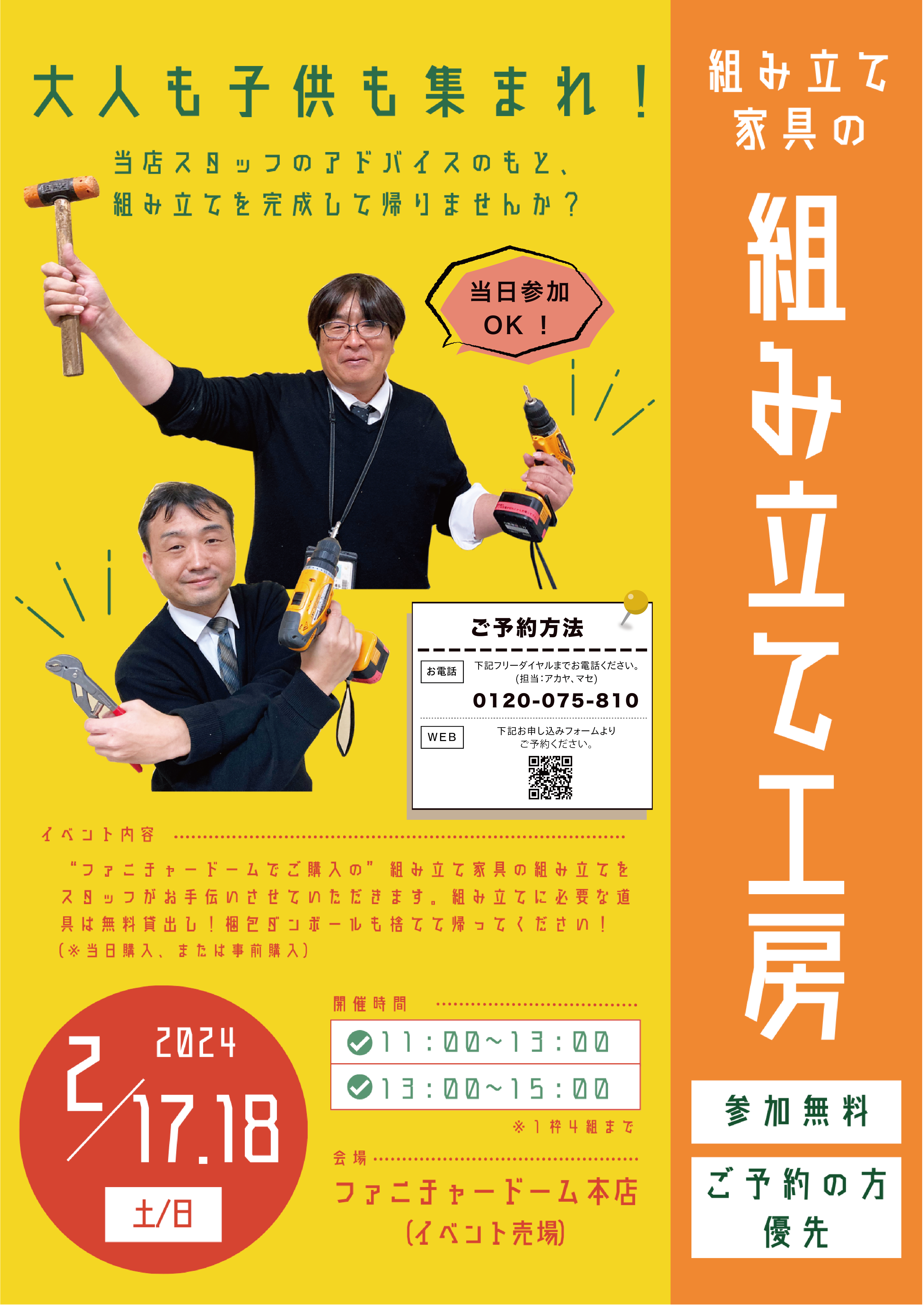 組立て家具の組立をスタッフがお手伝いさせていただくイベントです。