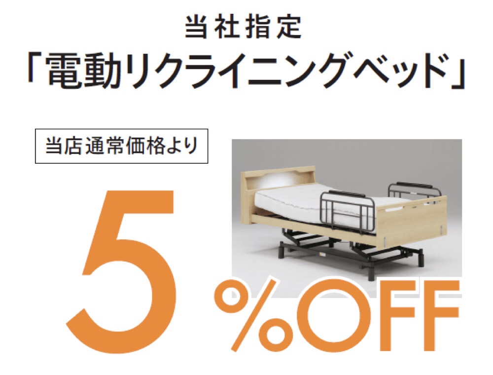 10月29日(日)までの期間限定で、当社指定の電動リクライニングベッドが5%OFF!