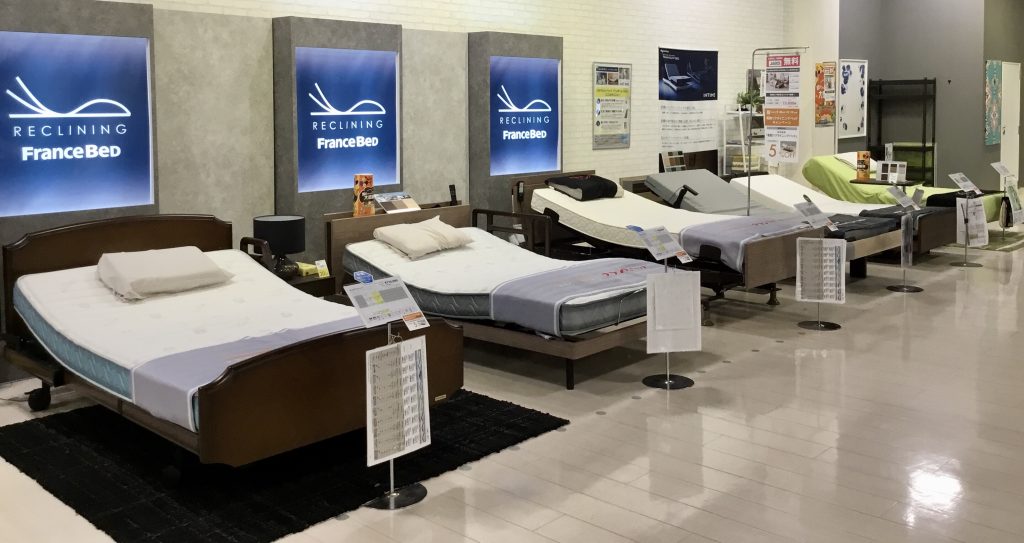 フランスベッド、シモンズベッド、パラマウントベッド、テンピュール、サータ、アンネルベッド、他メーカー等のリクライニングベッドをご用意しております。