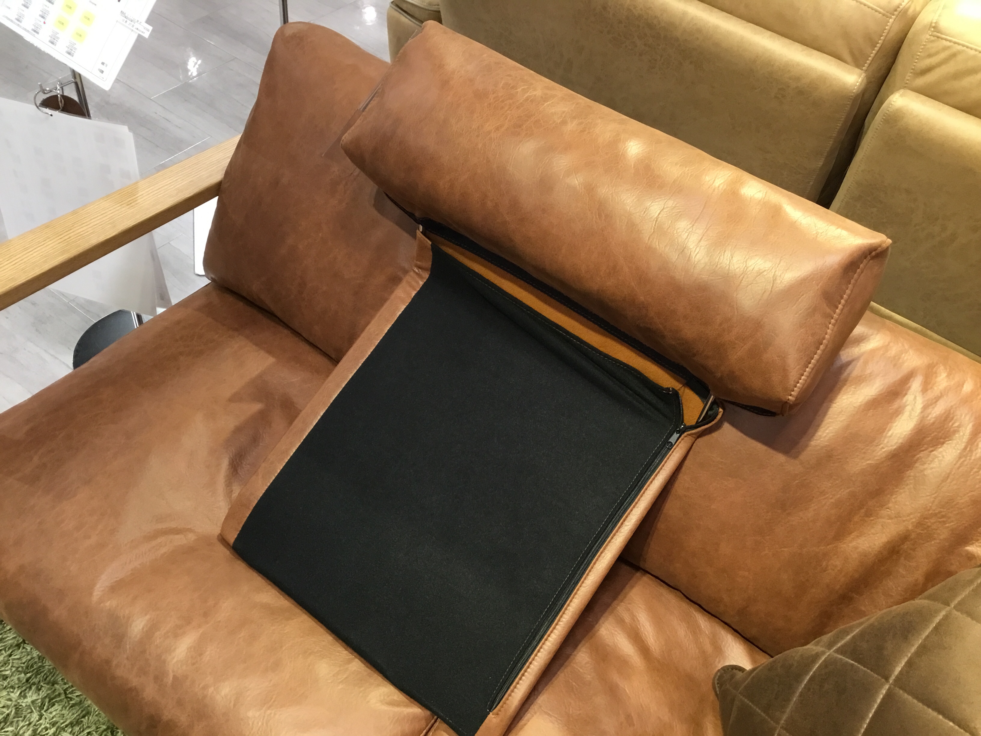 展示のアーモンドBR色は、幅165㎝の2人掛けソファと、幅205㎝のカウチソファのサイズ展開です。