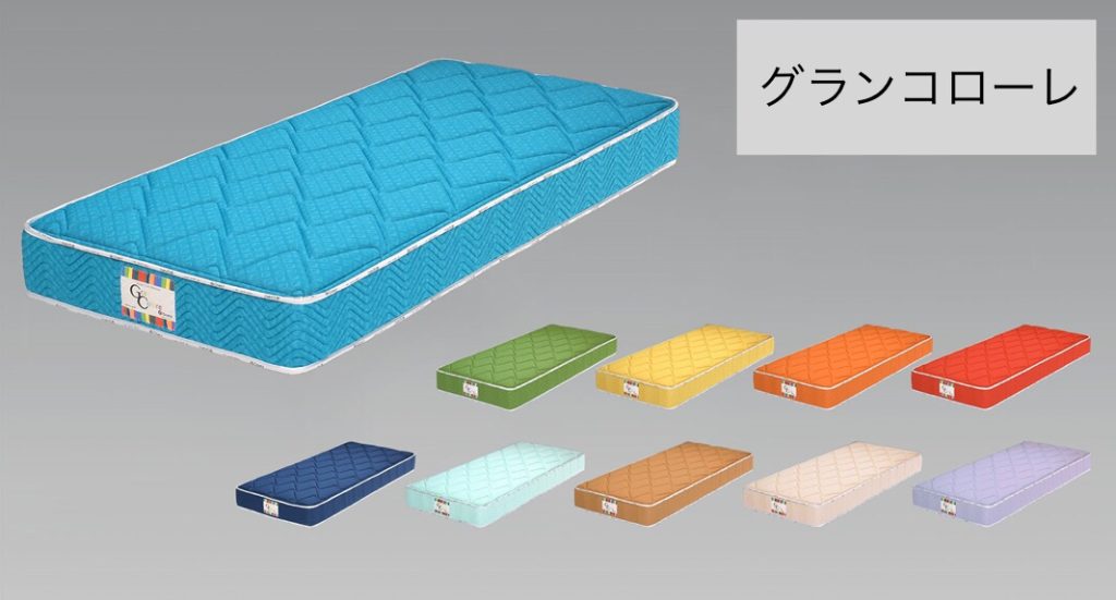 グランコローレマットレスは、ポケットコイルとボンネルコイルの2種類のスプリング、セミシングルからクイーン(2枚もの)までのサイズからお選び頂けます。