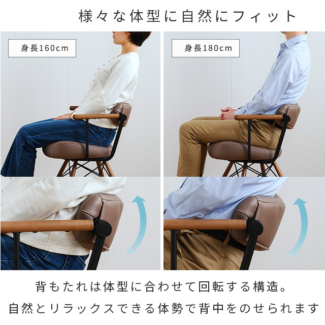 背もたれは体型に合わせて自然とリラックスできる体勢