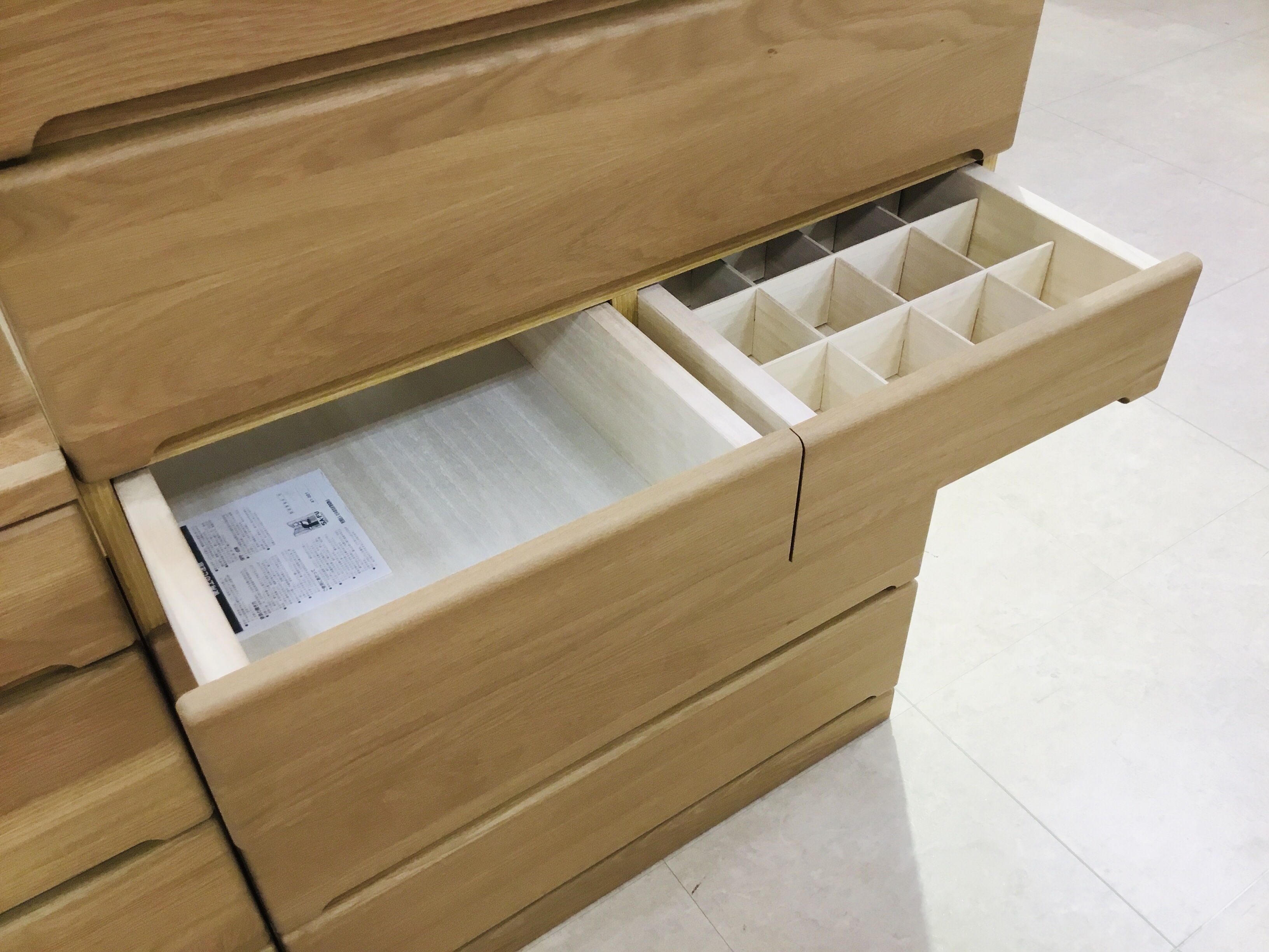 見た目はオーソドックスですが、高級感のあるホワイトオーク材を使用したタンスとなっております。
