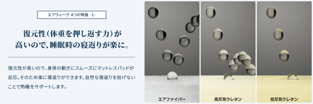 エアウィーヴの優れた通気性と寝返りの打ちやすさが効果的な熱放散を促し、深部体温を下げ、質のよい睡眠をもたらします。