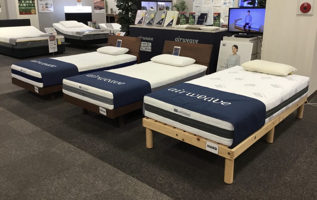 ⬇︎右(手前)から、エアウィーヴ マットレス S04、S02、S03の順に並んでます。