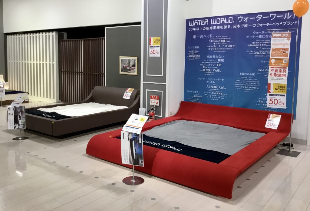 ⬇︎手前の赤と茶色のベッドは、どちらもウォーターベッドです。