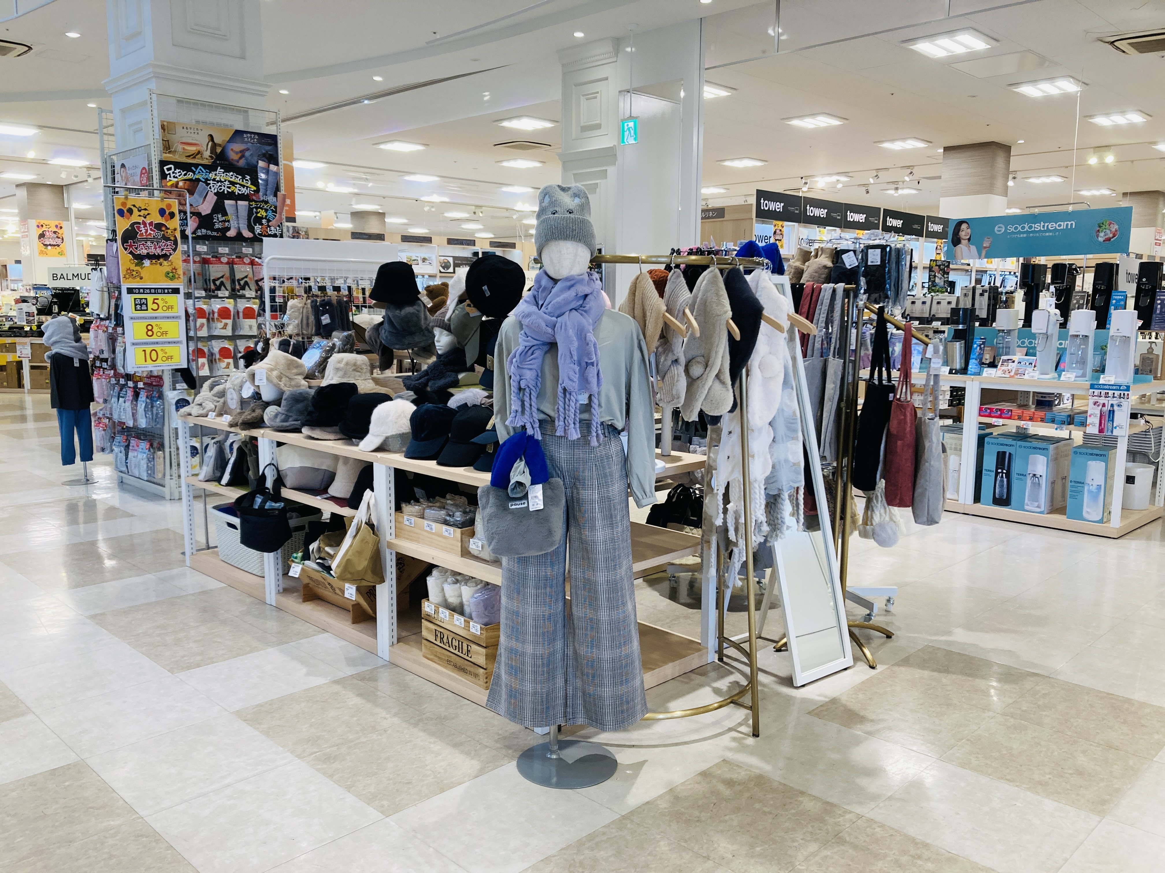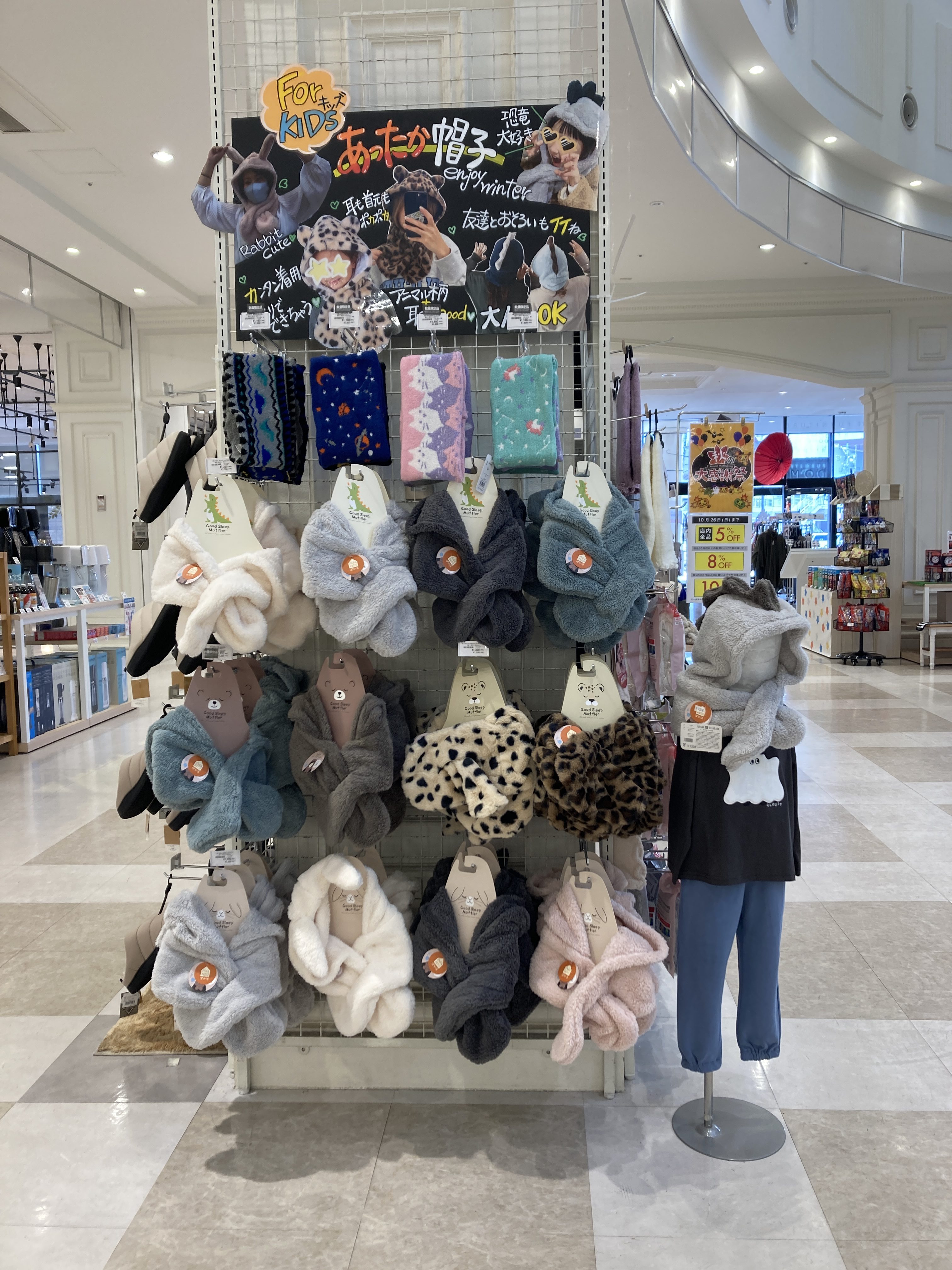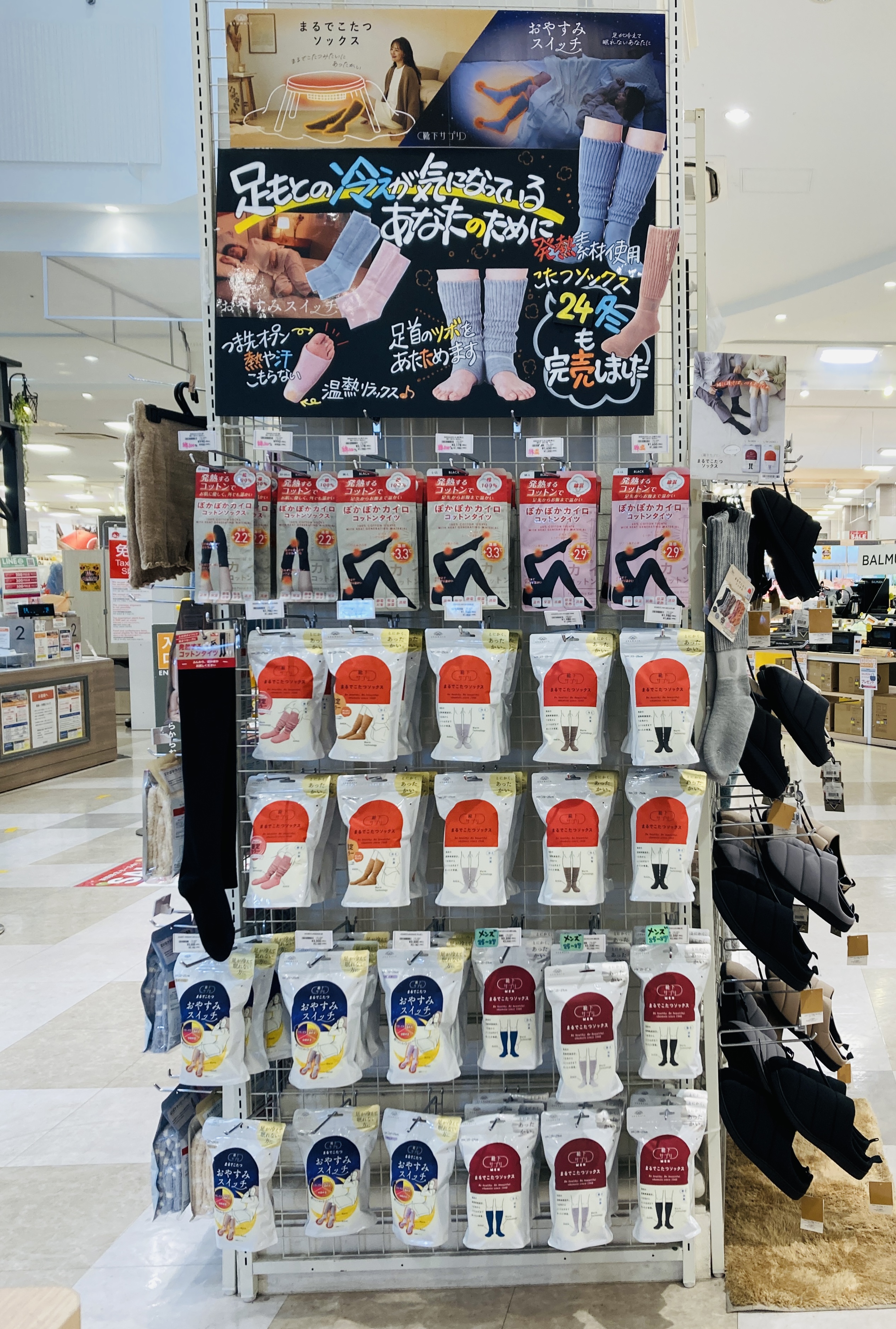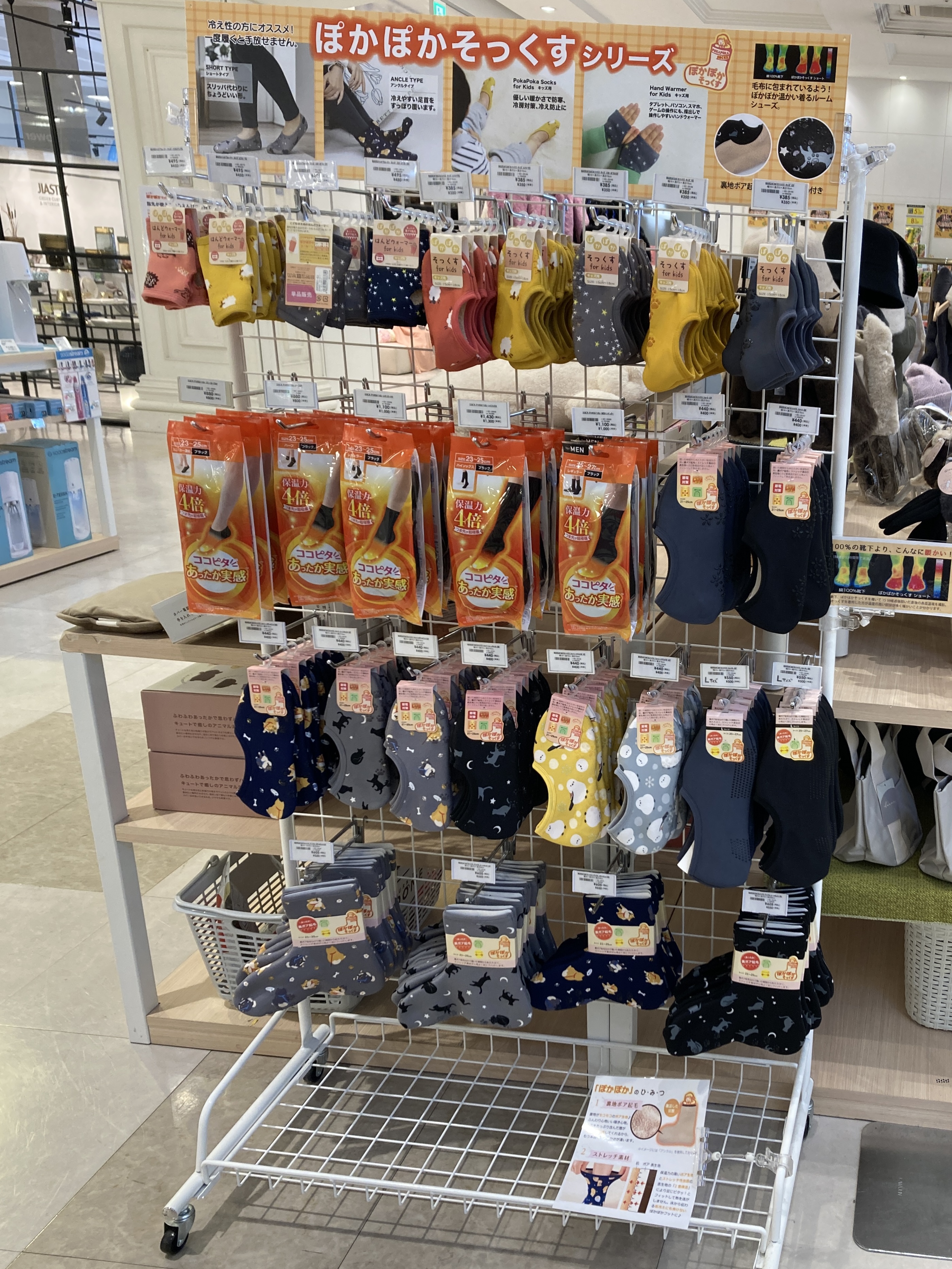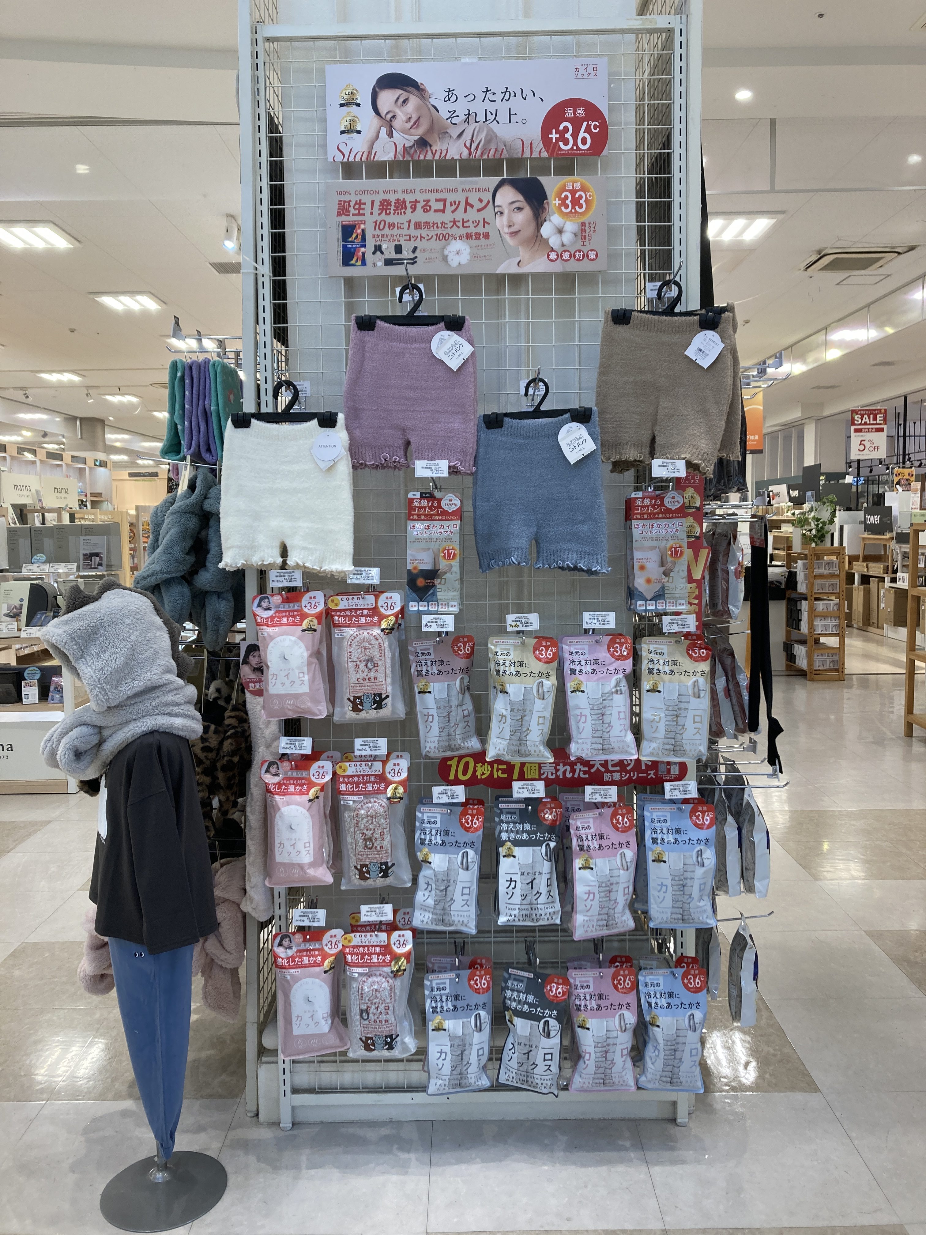 店頭にはあったかグッズが揃いました