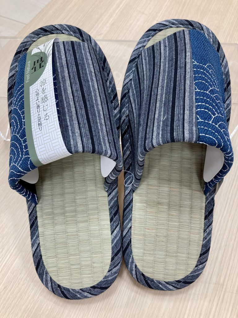 涼を感じ、ひんやりとした足触りの天然素材を使用したスリッパ