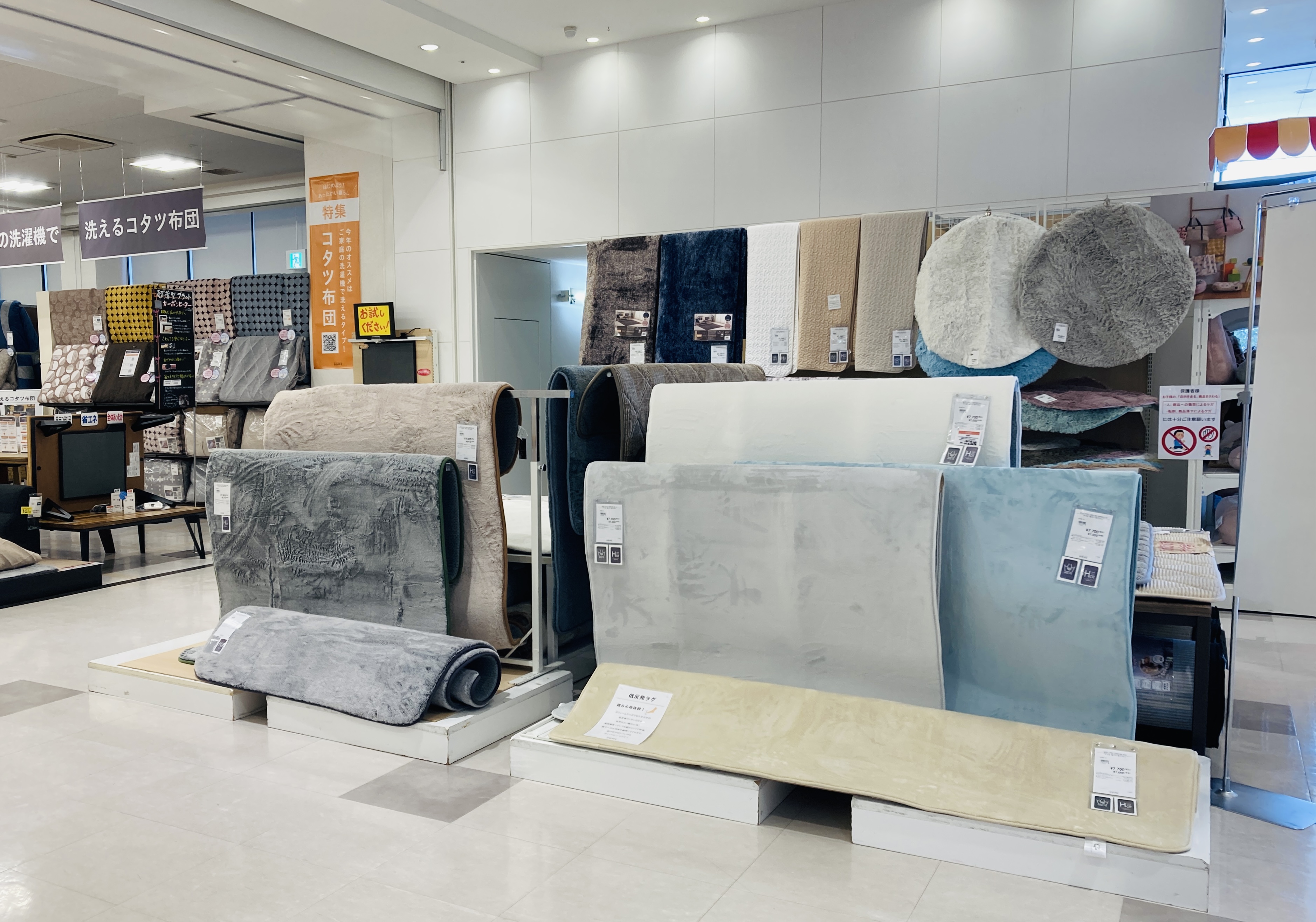 展示はグランドBK(ラグ)・ルーン120NA(こたつ)・フラットコーナーソファGY