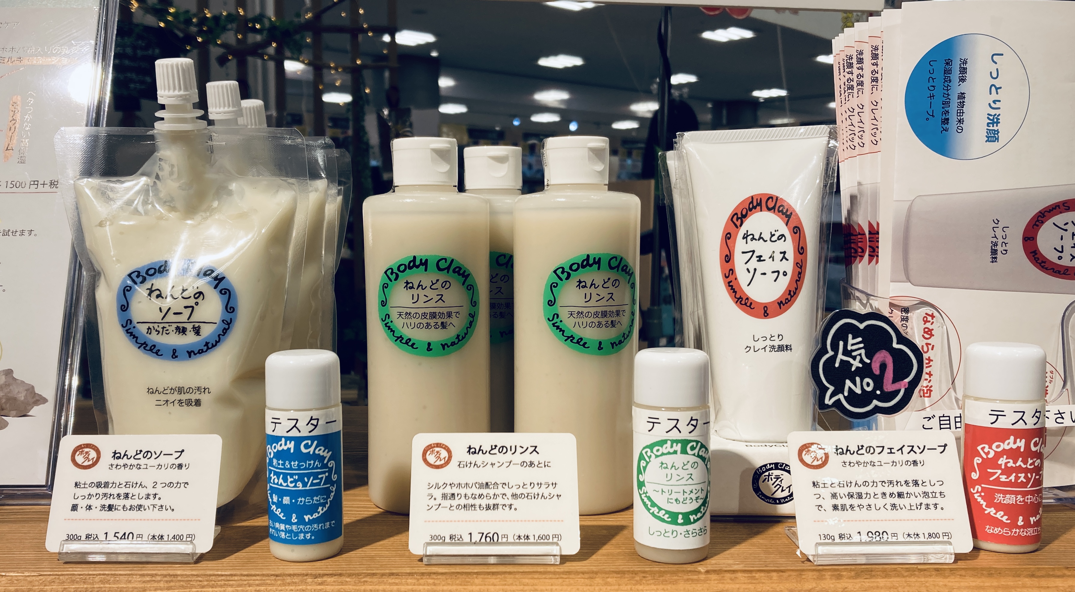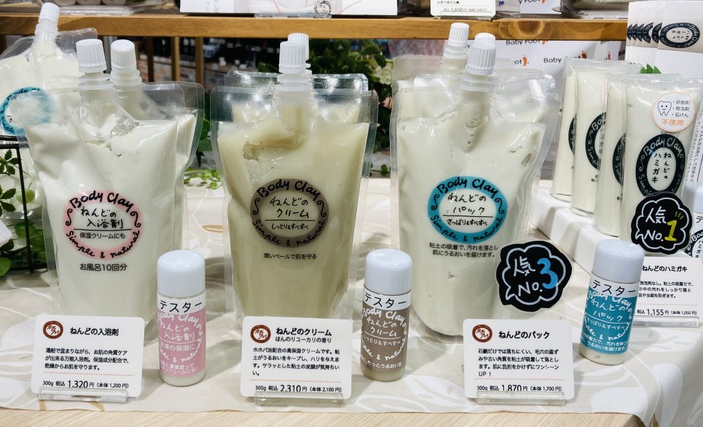 国産のねんどにこだわり、その力を最大限に引き出すため、できる限りシンプルでナチュラルな成分を選び、肌にやさしいシリーズです。
