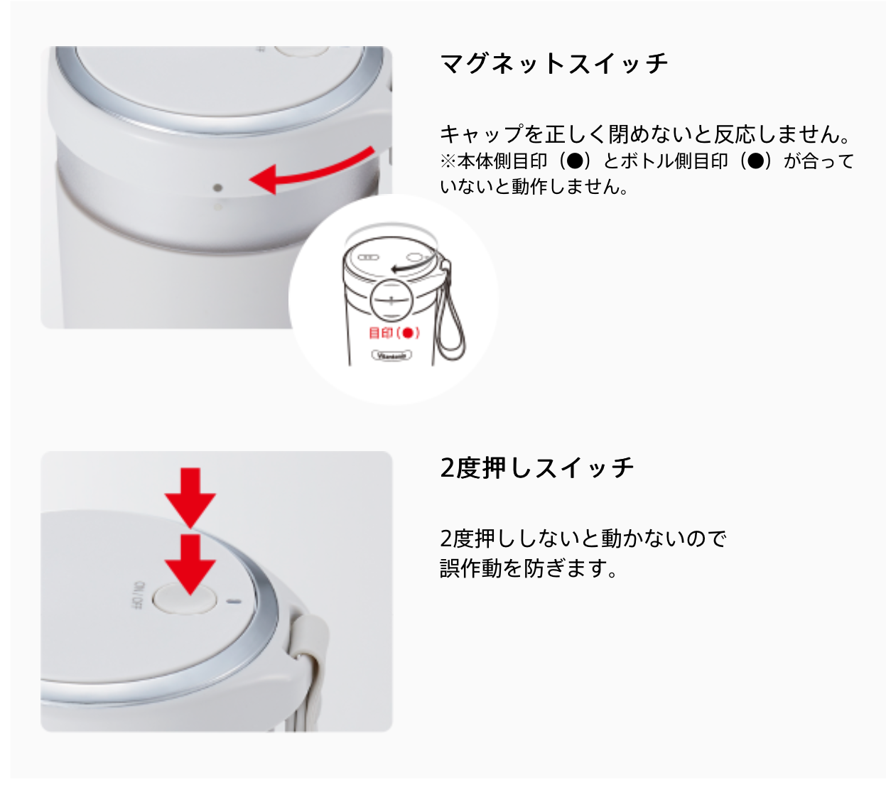マグネットスイッチと2度押しスイッチの安全機能