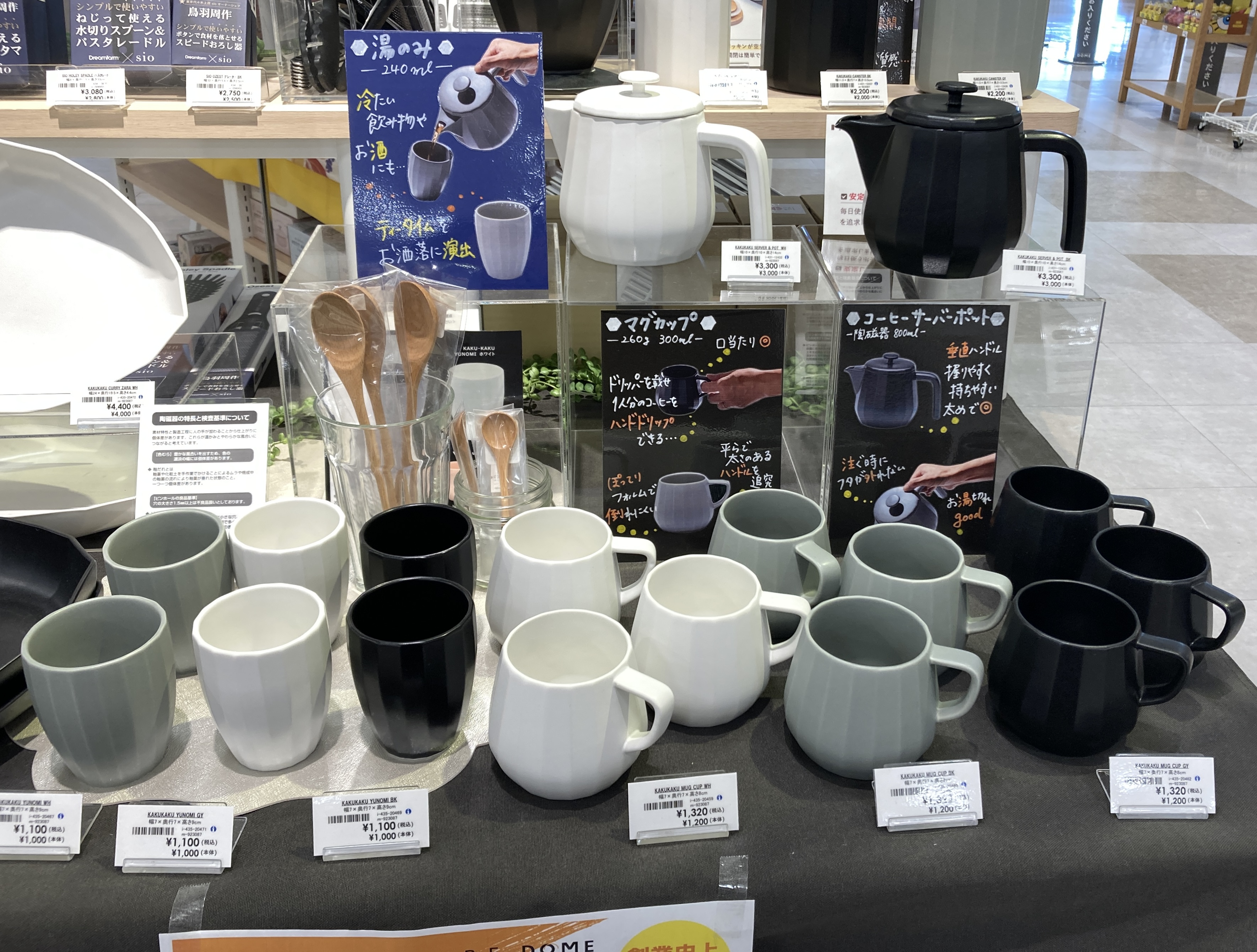 ハンドルは持ちやすくお湯切れがよい『ポット』口当たりのよい厚みとぽってりフォルムがかわいい『マグカップ』お好みのドリンクをタンブラーとしても楽しめる『湯呑み』