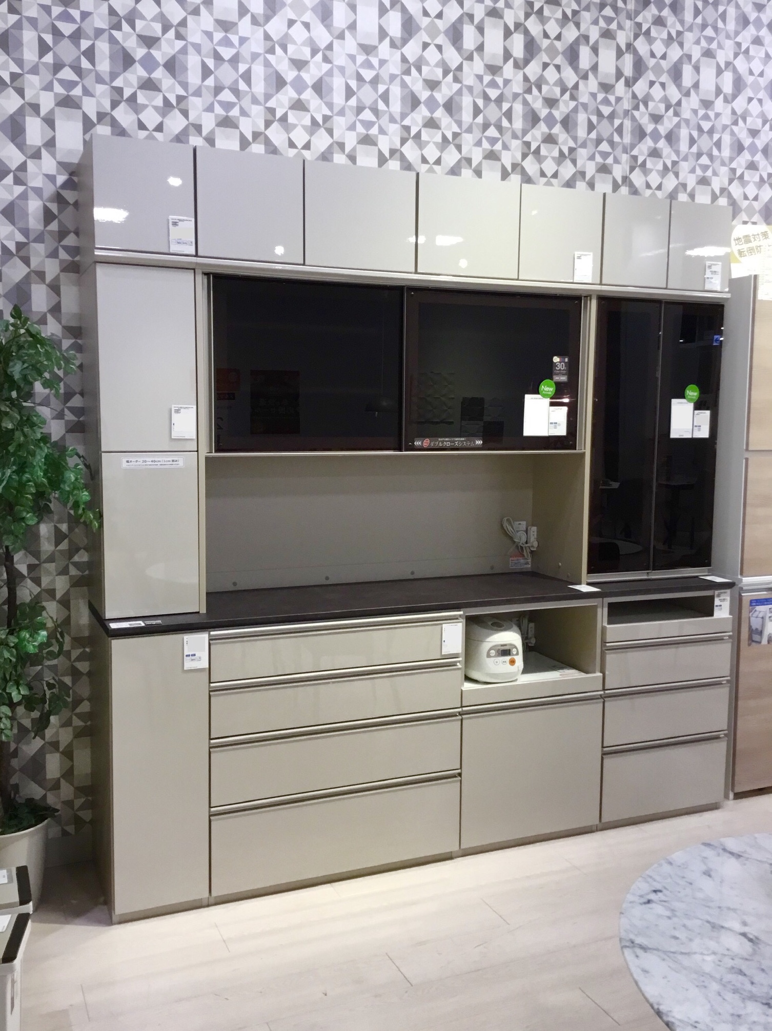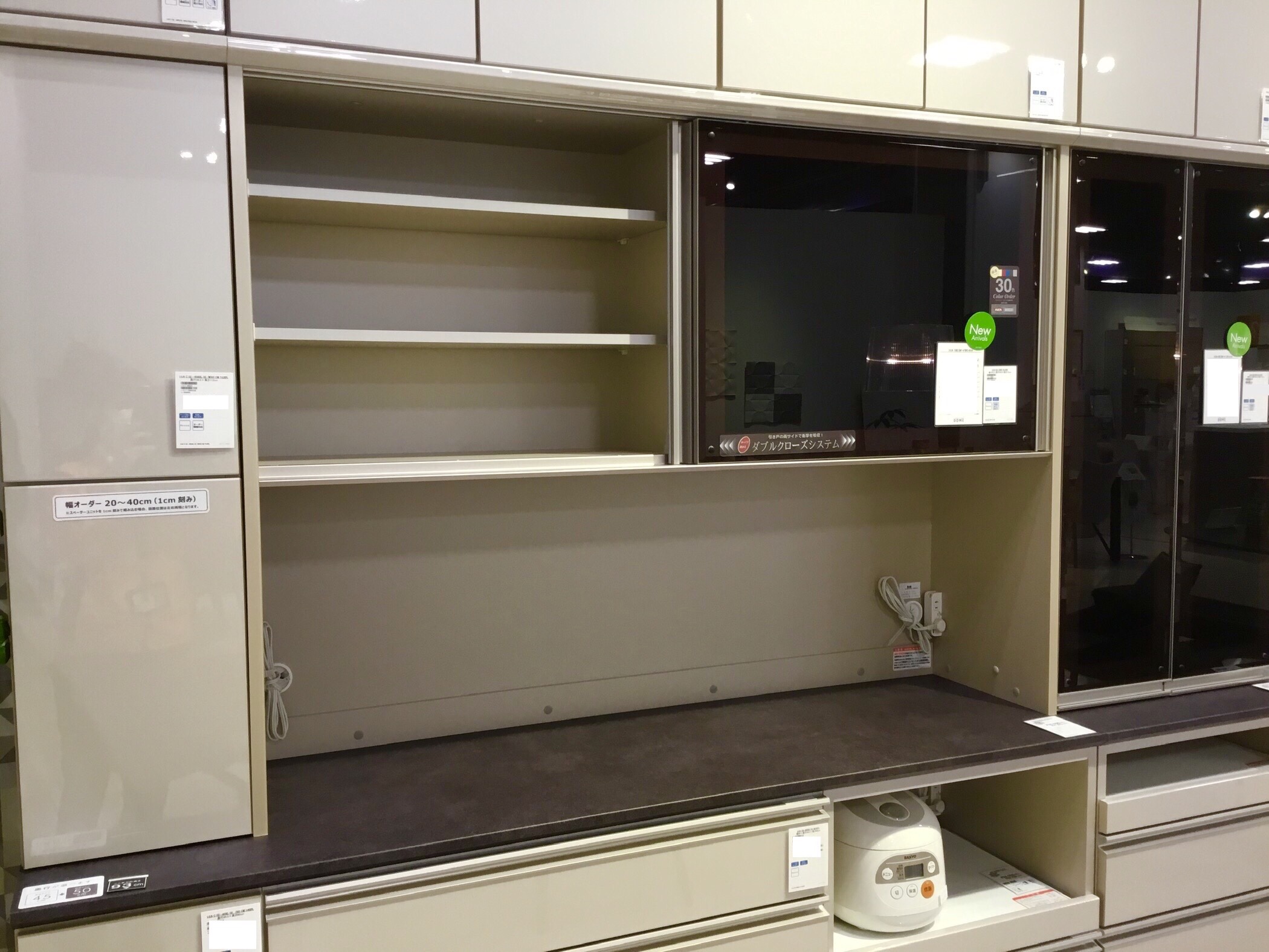 ユニットタイプの食器棚なので、ご希望のサイズに合わせてお客様の使い勝手に合ったパーツとサイズをお選びいただけます。